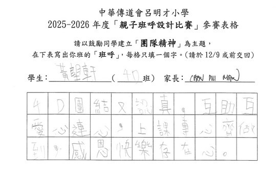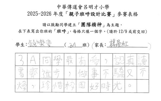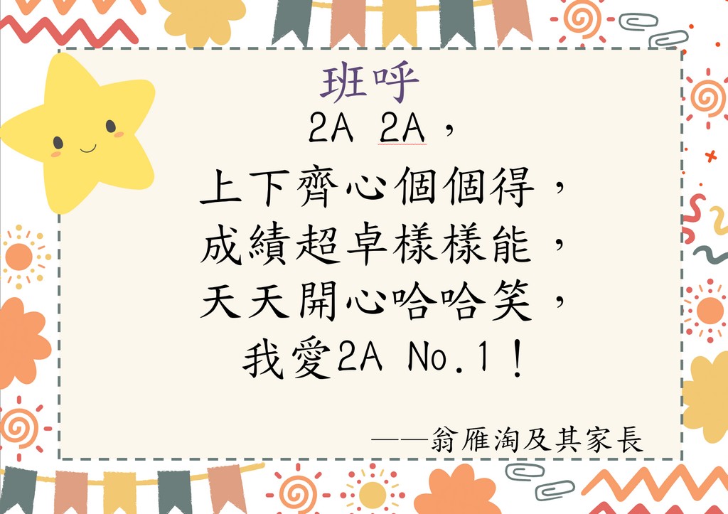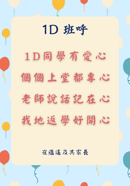1A班有文老師,注滿愛心話咁易,互相守望好EASY,呂小1A係醒D!