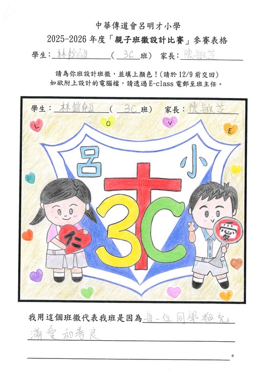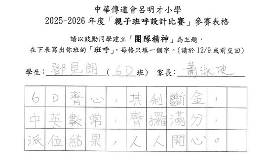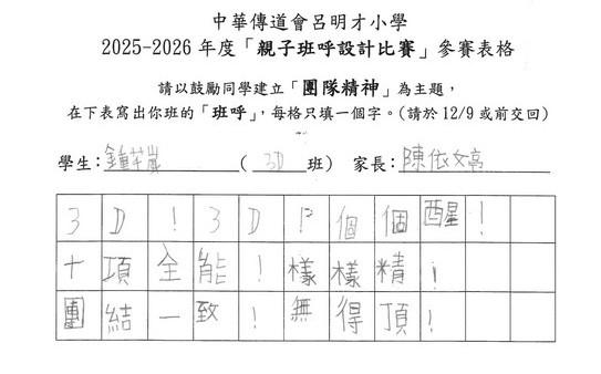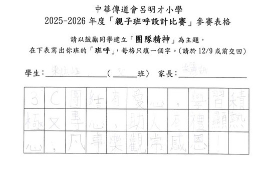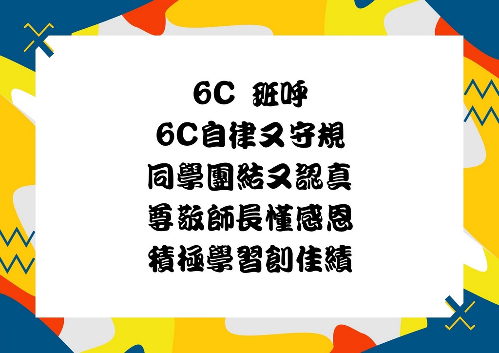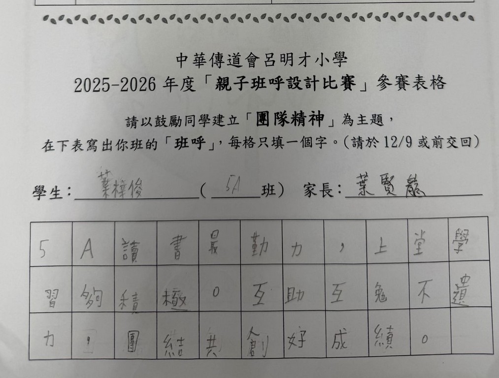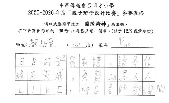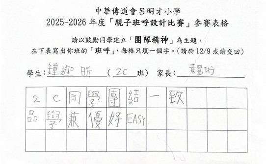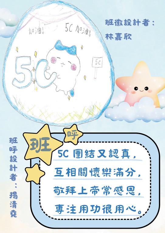 5C團結又認真,互相關懷樂滿分,敬拜上帝常感恩,專注用功很用心。