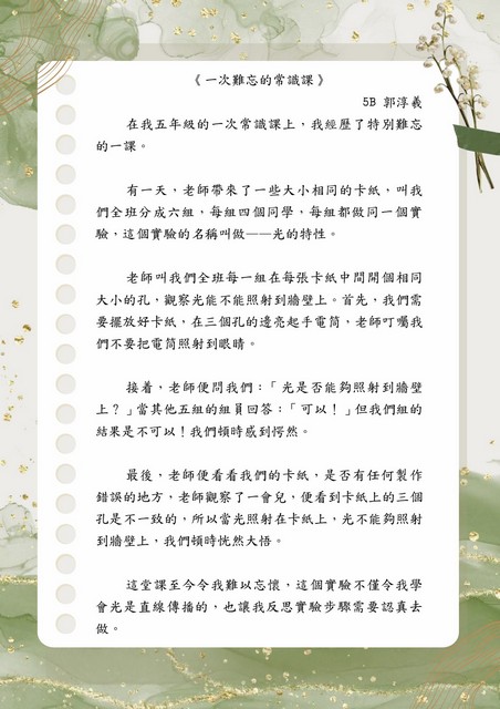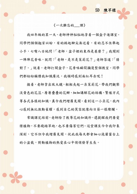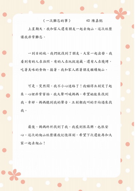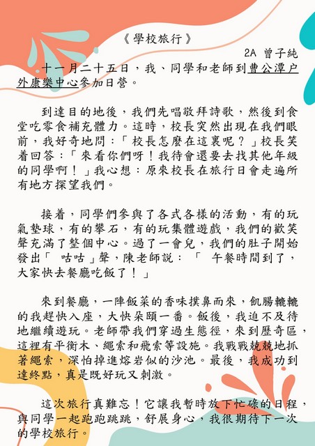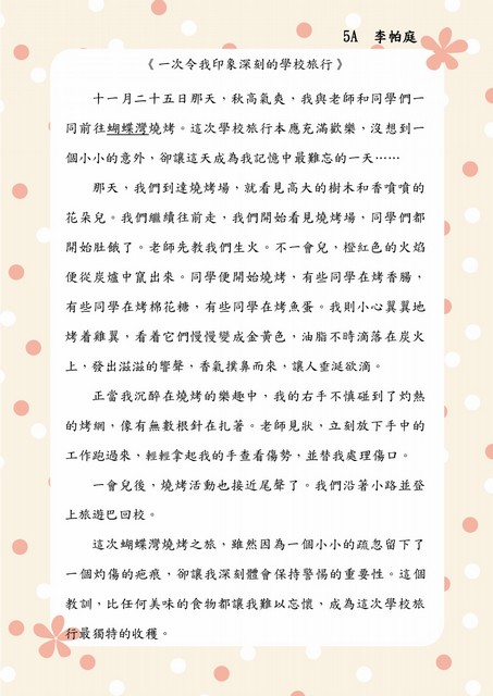 《一次印象深刻的學校旅行》 5A 李帕庭