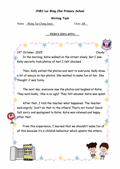 Helen’s diary entry 5B Wong Tsz Ching Jessy
