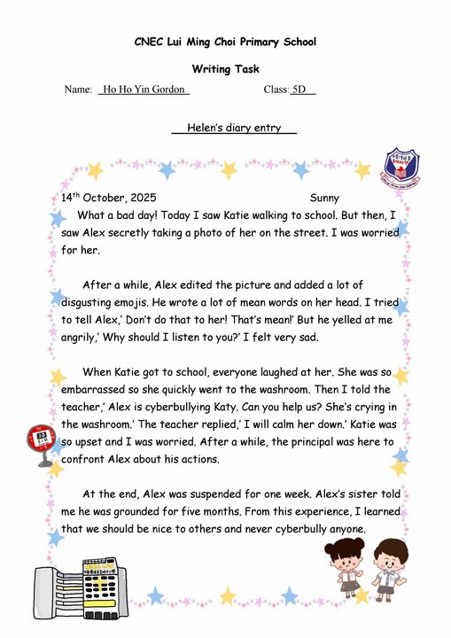Helen’s diary entry 5D Ho Ho Yin Gordon