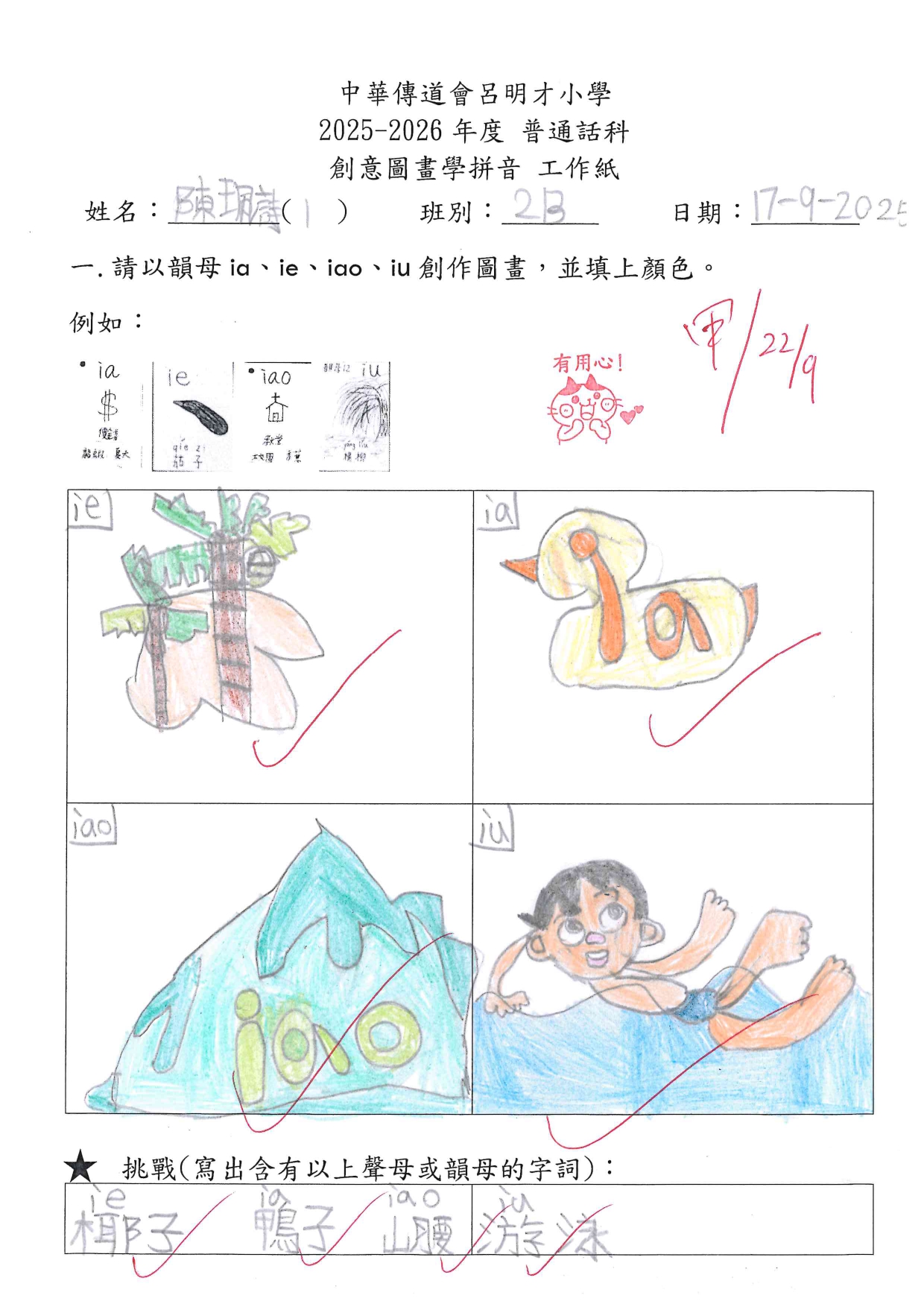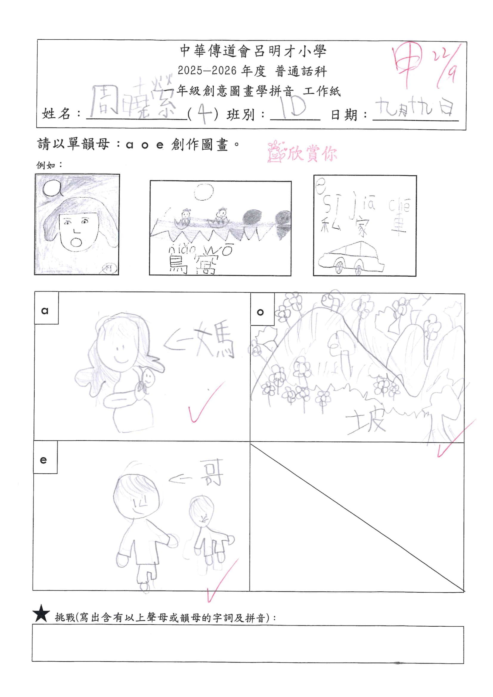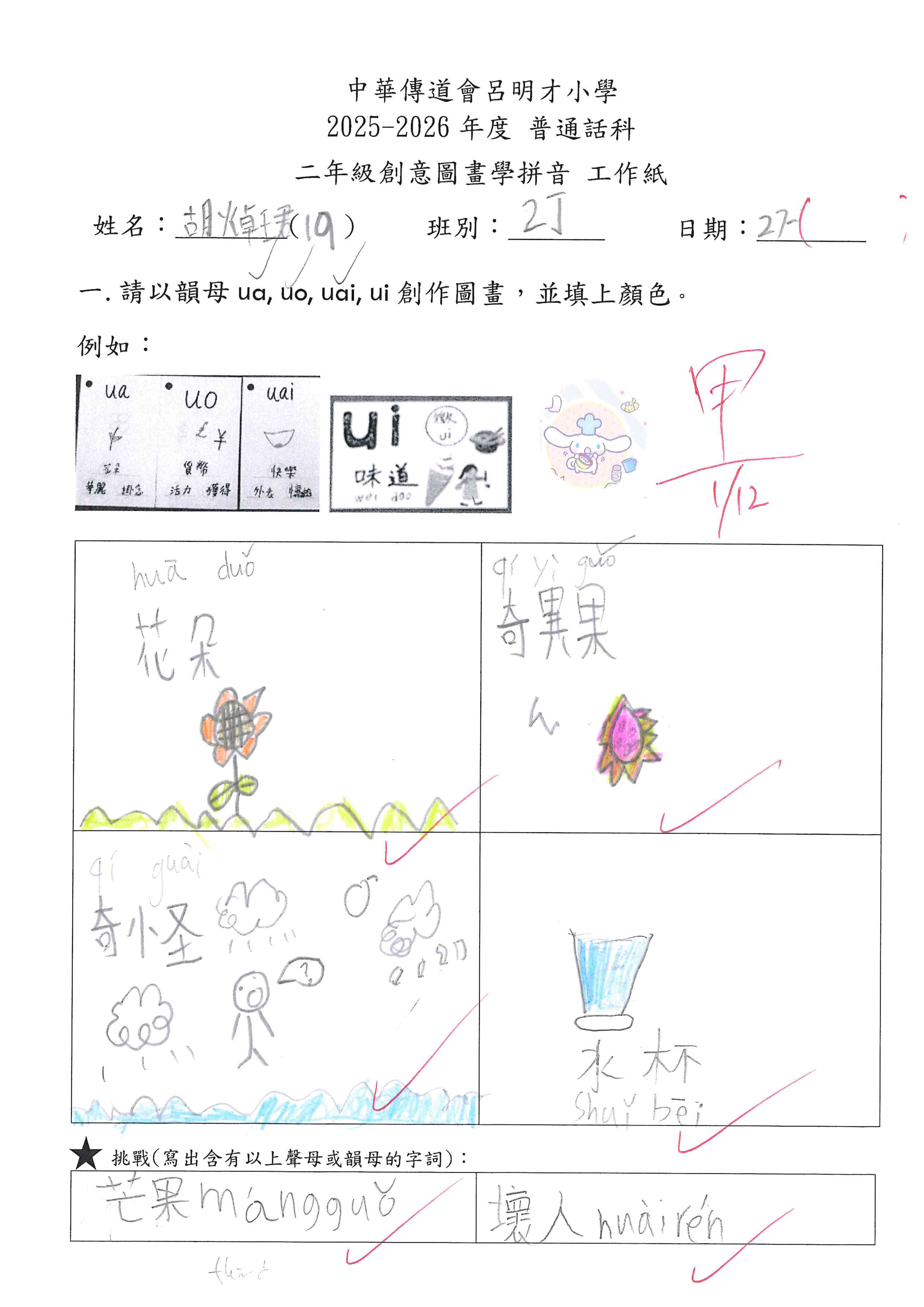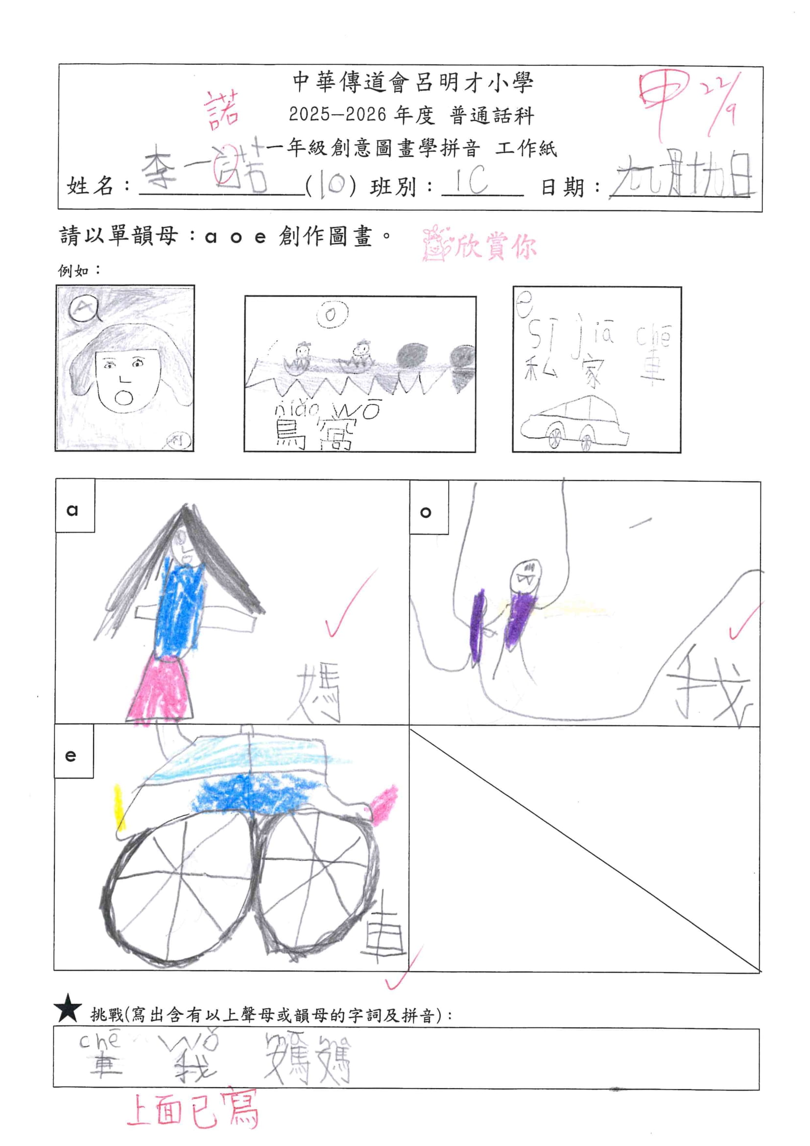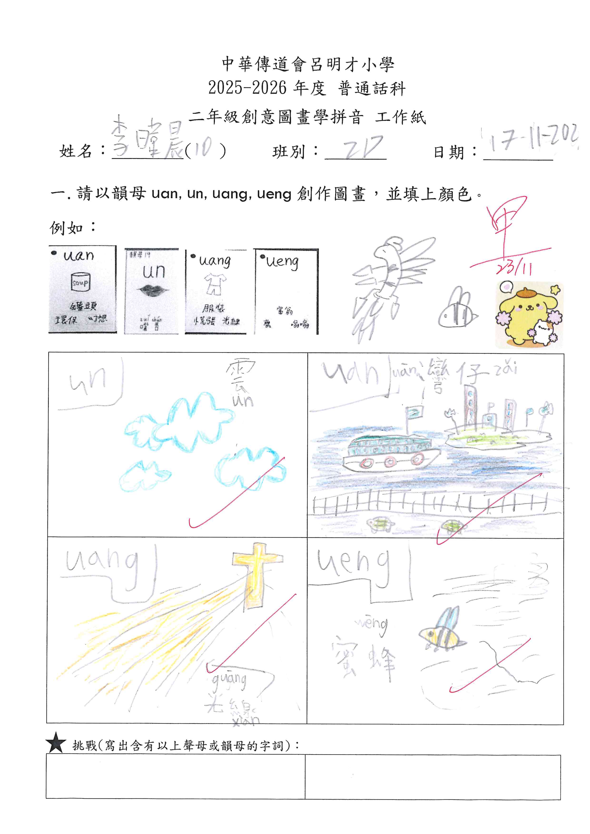 小一創意圖畫學拼音工作紙佳作
