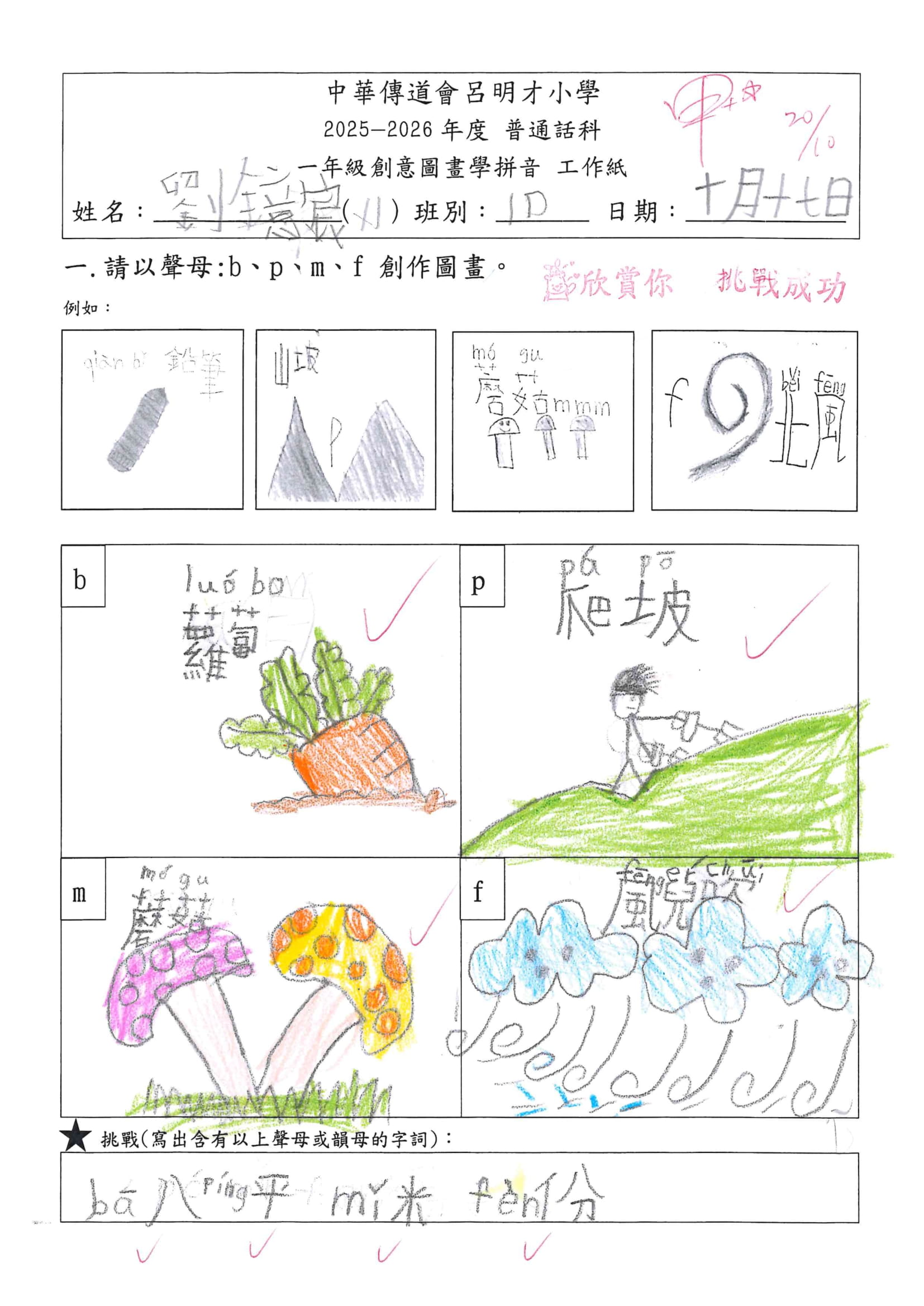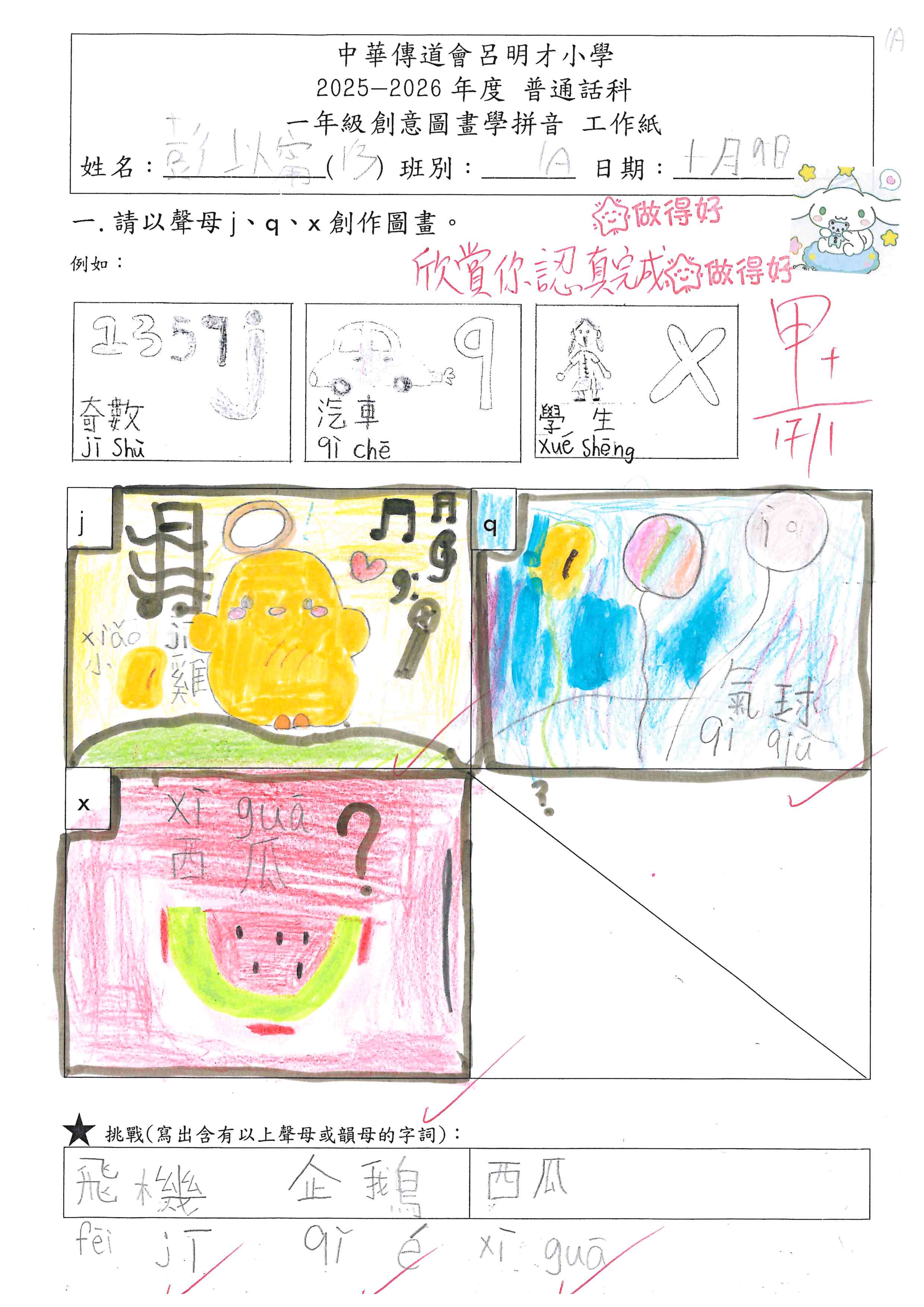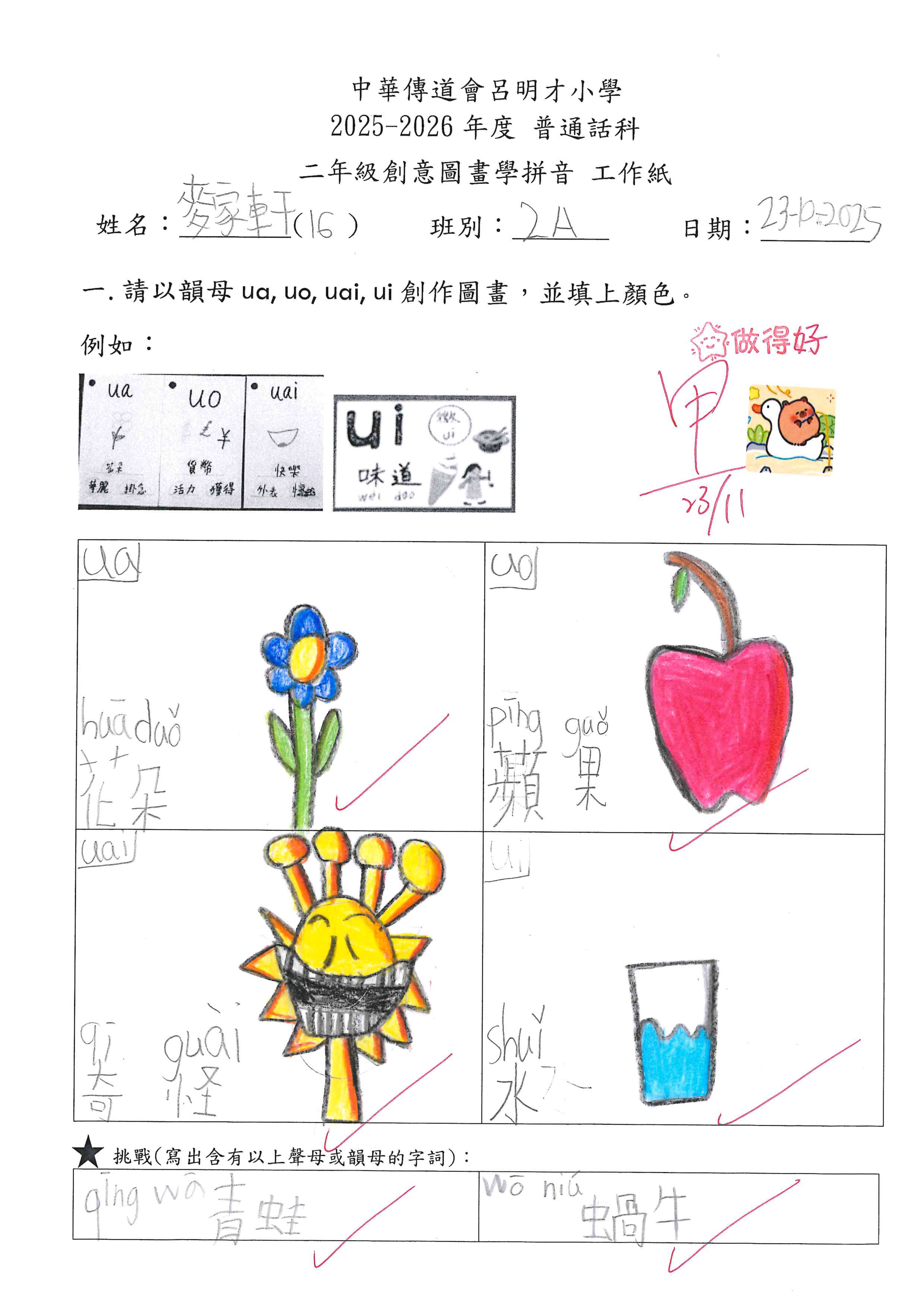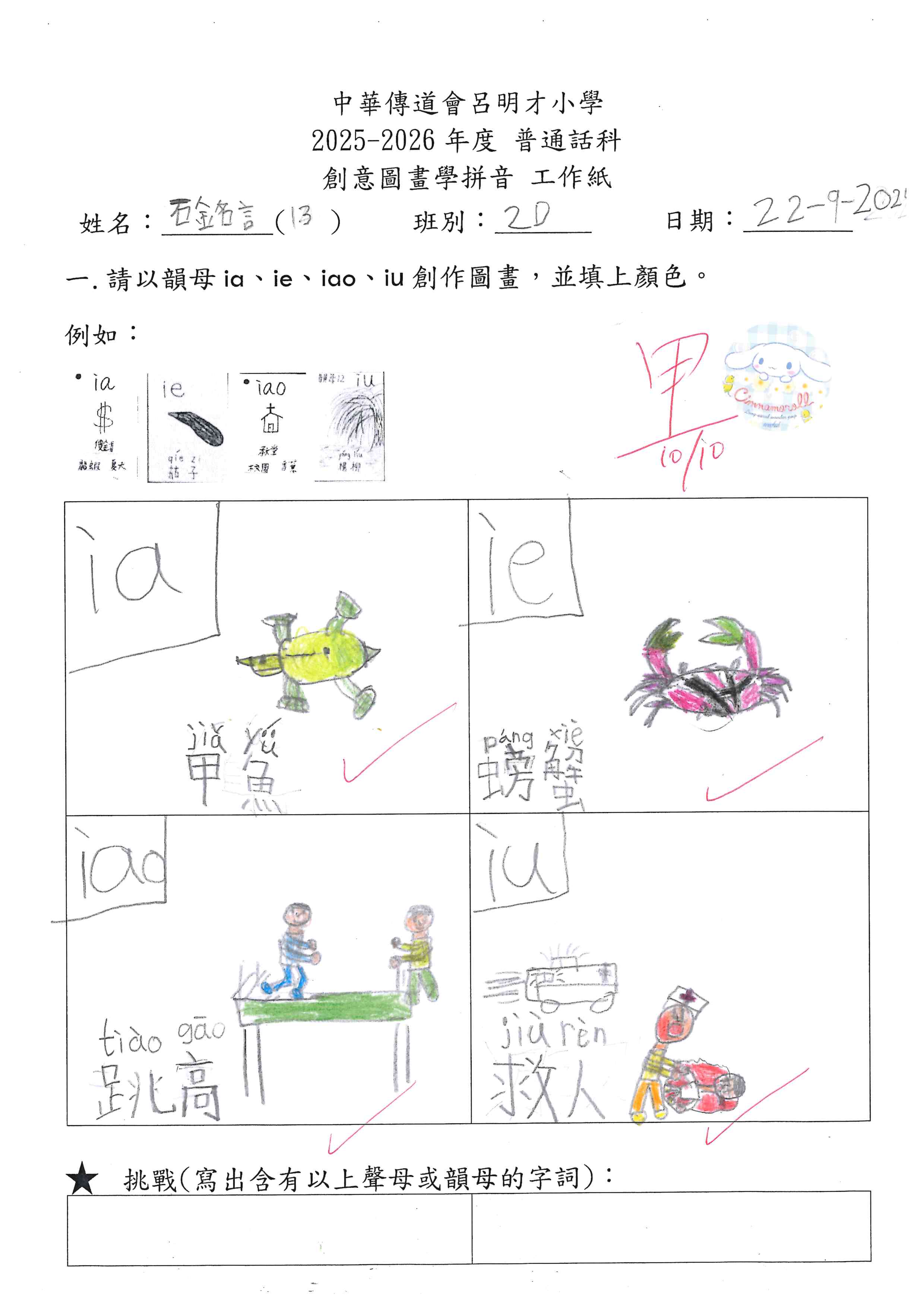 小一創意圖畫學拼音工作紙佳作