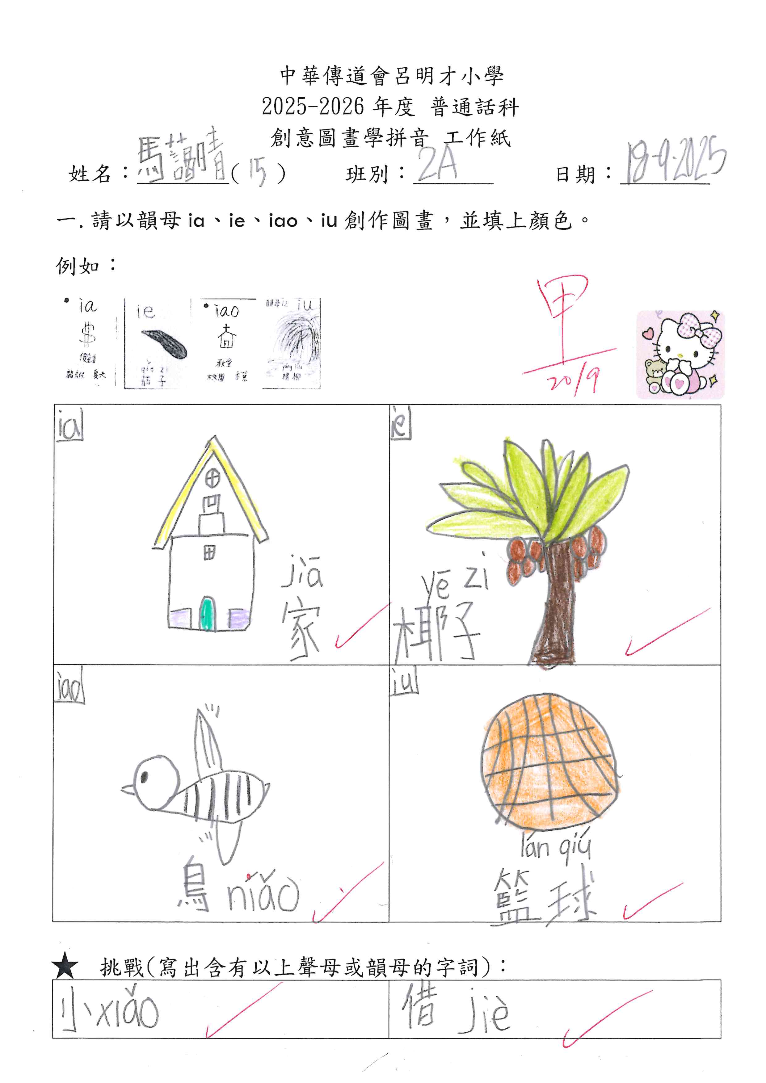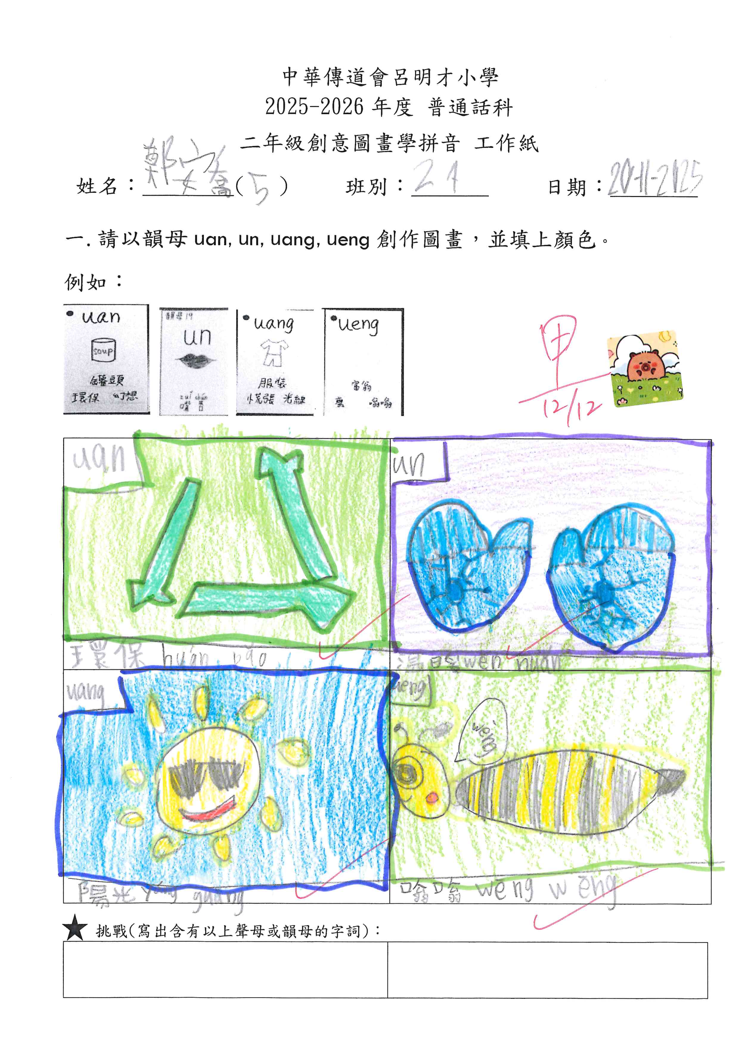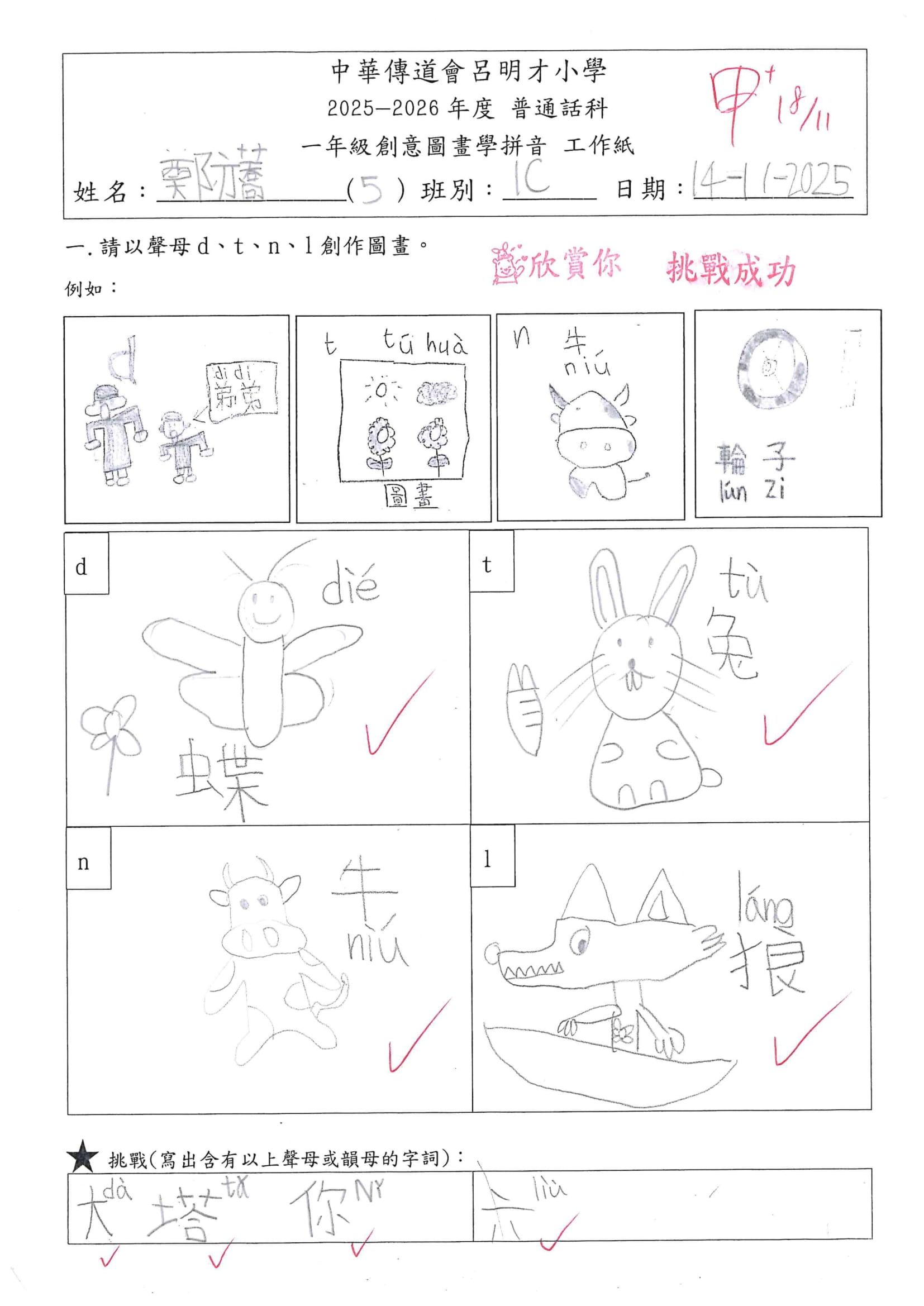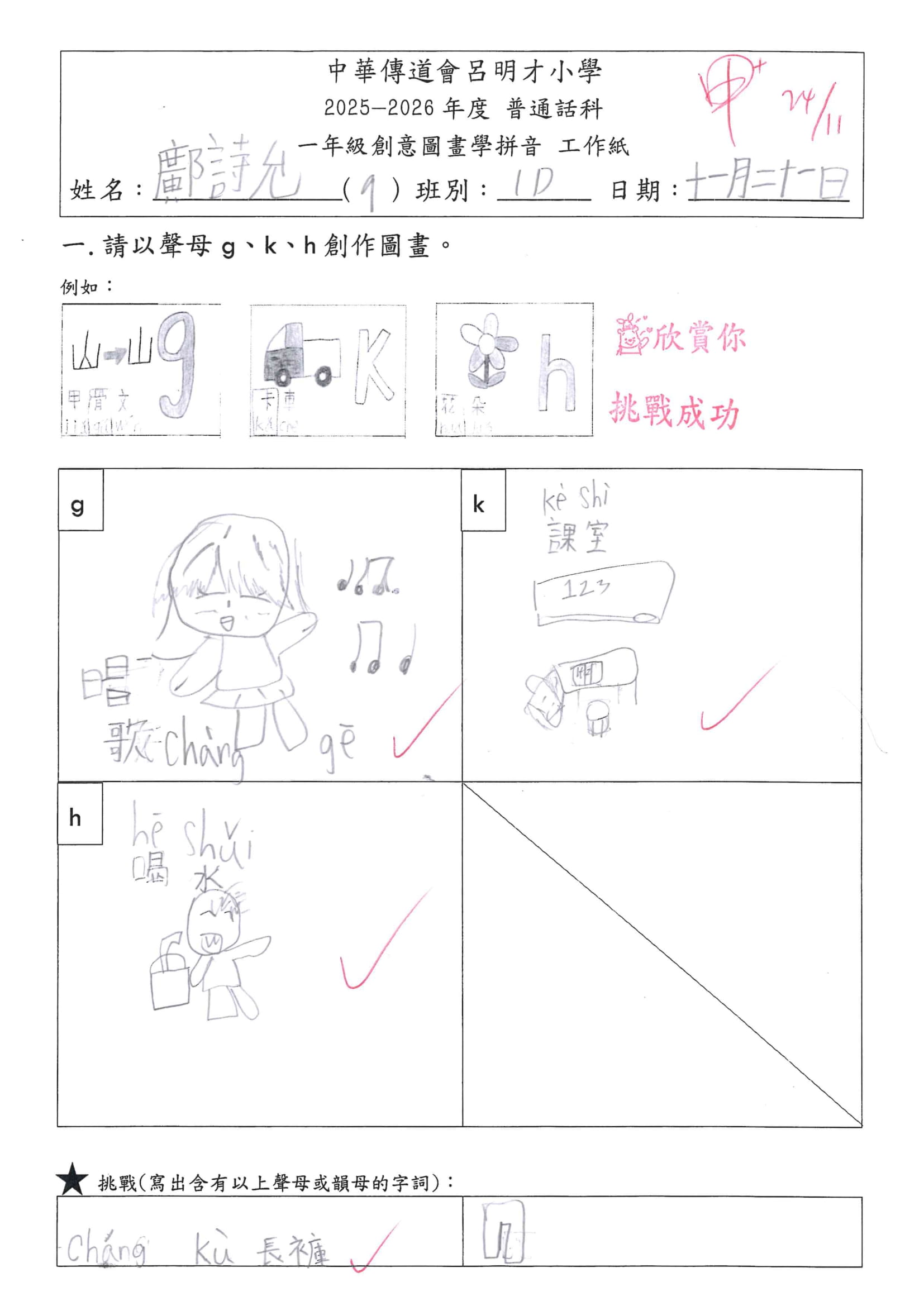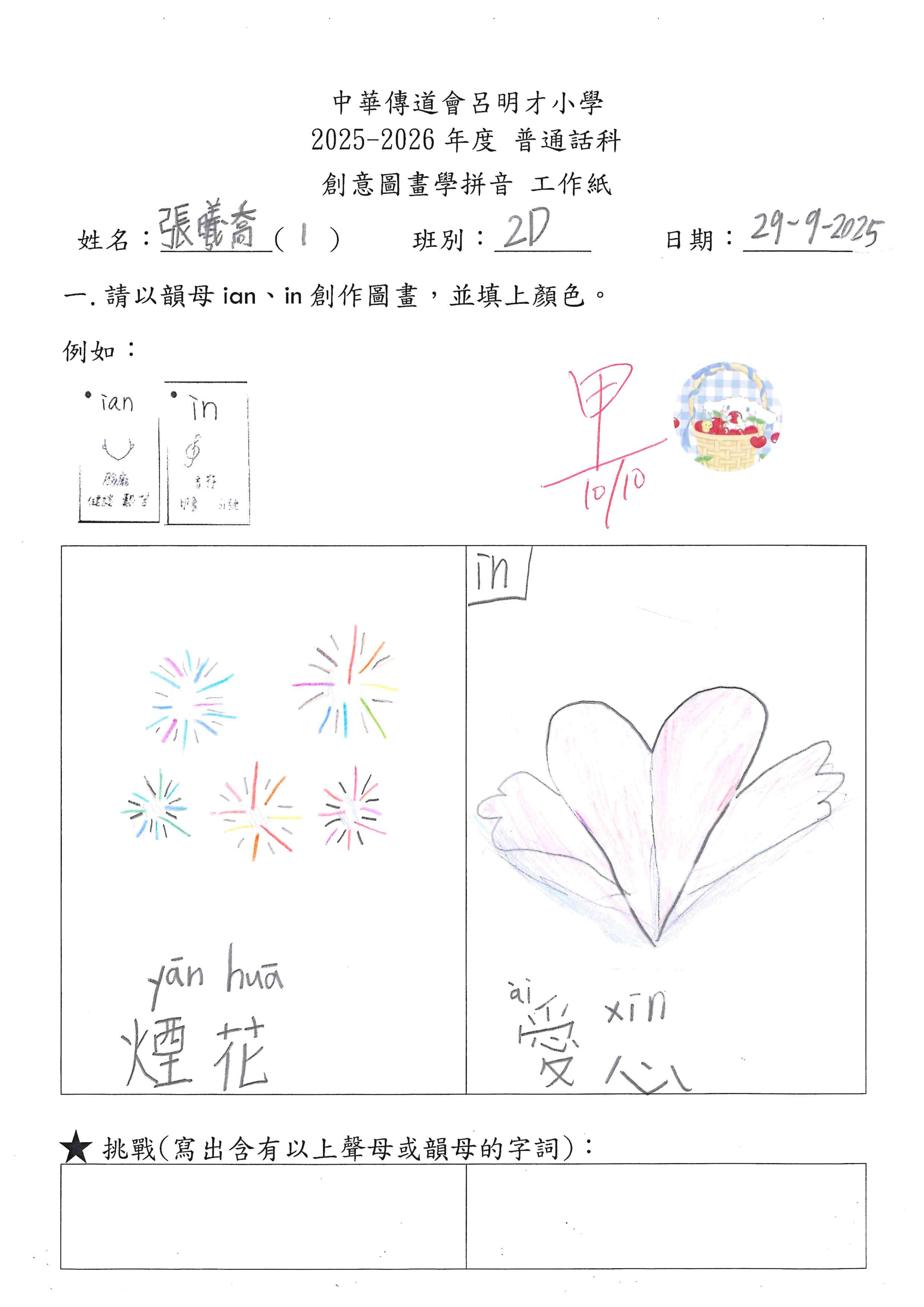 小一創意圖畫學拼音工作紙佳作