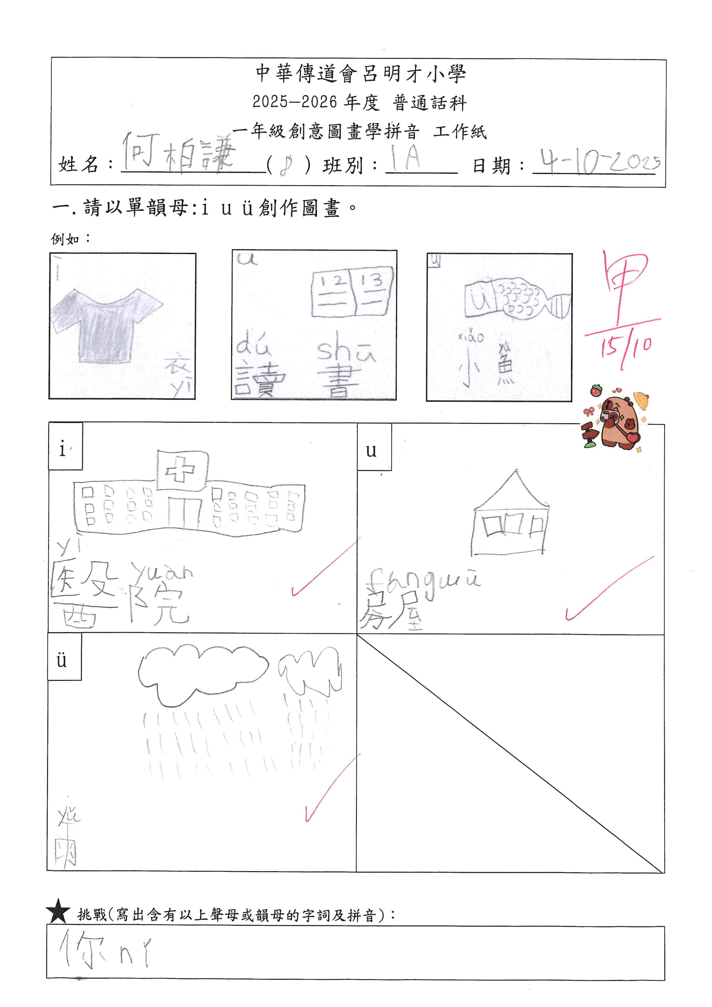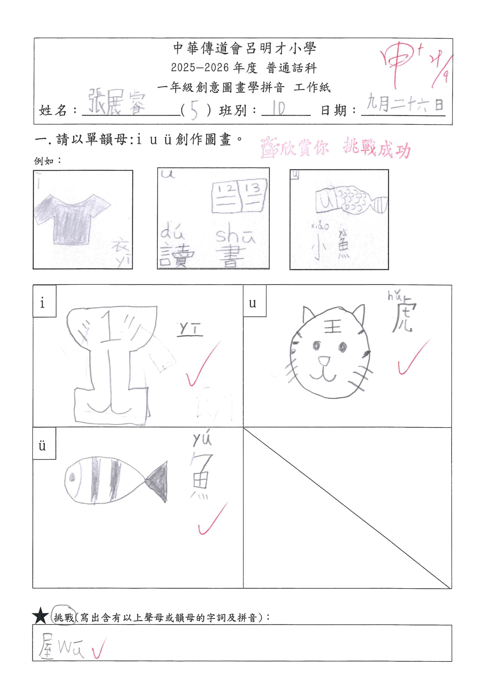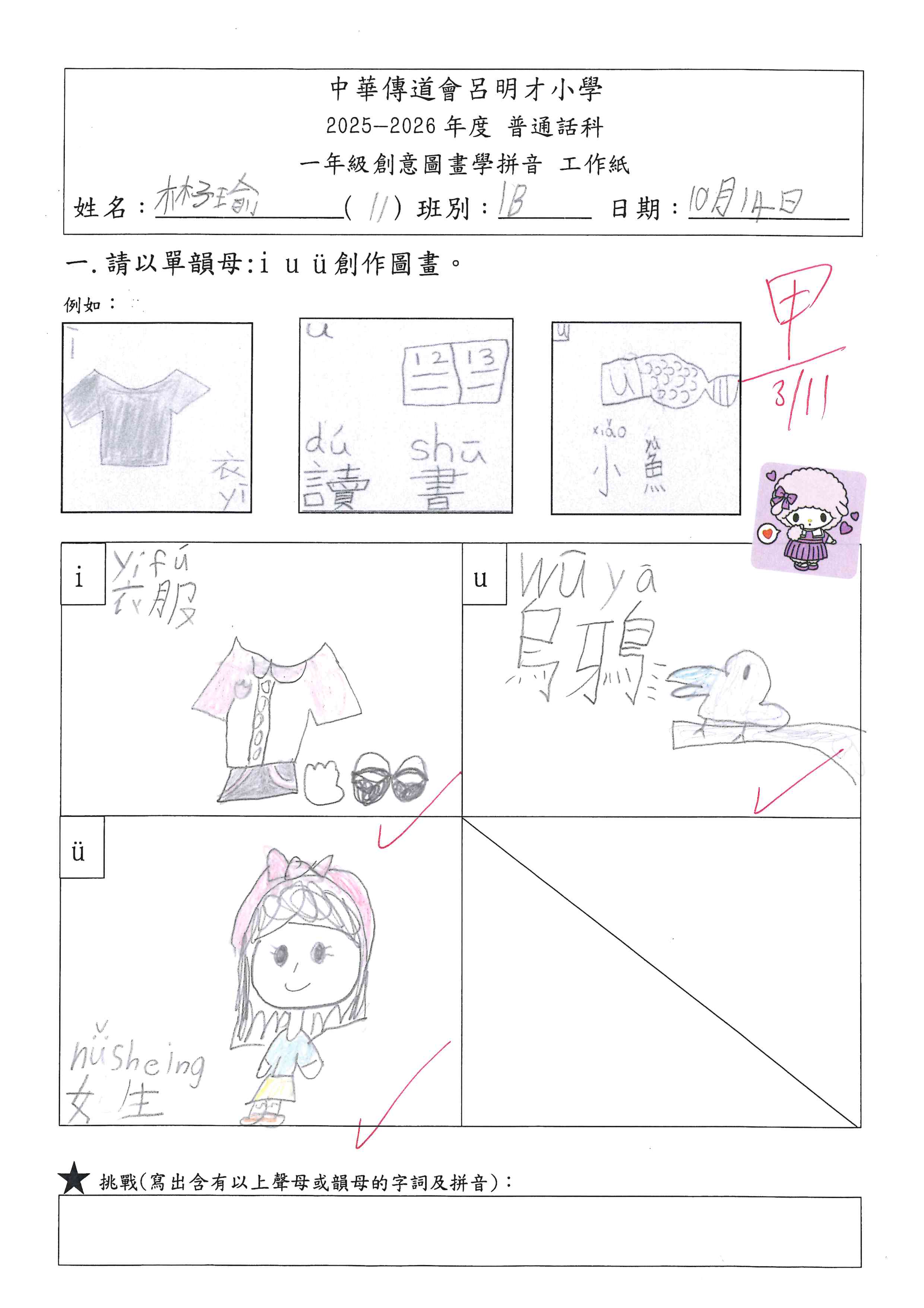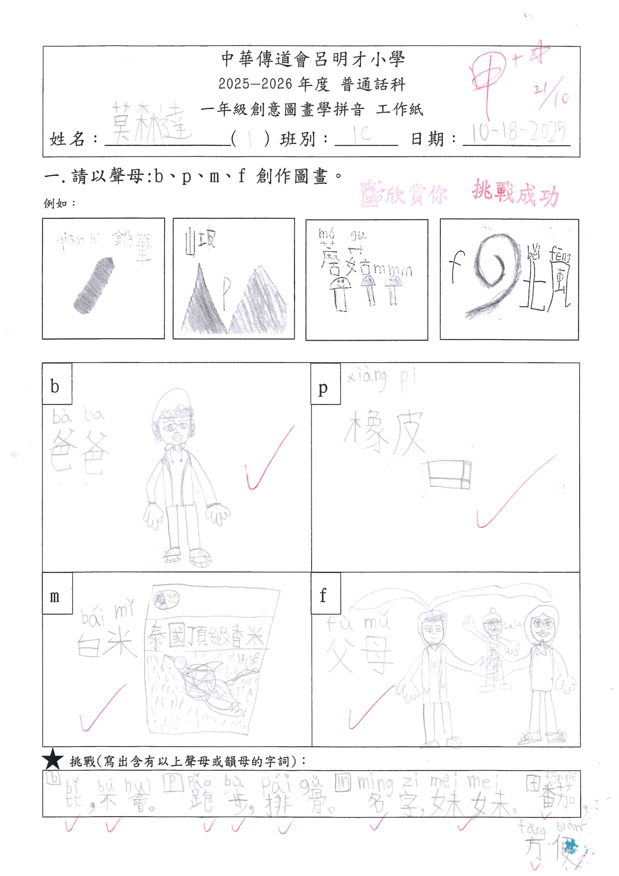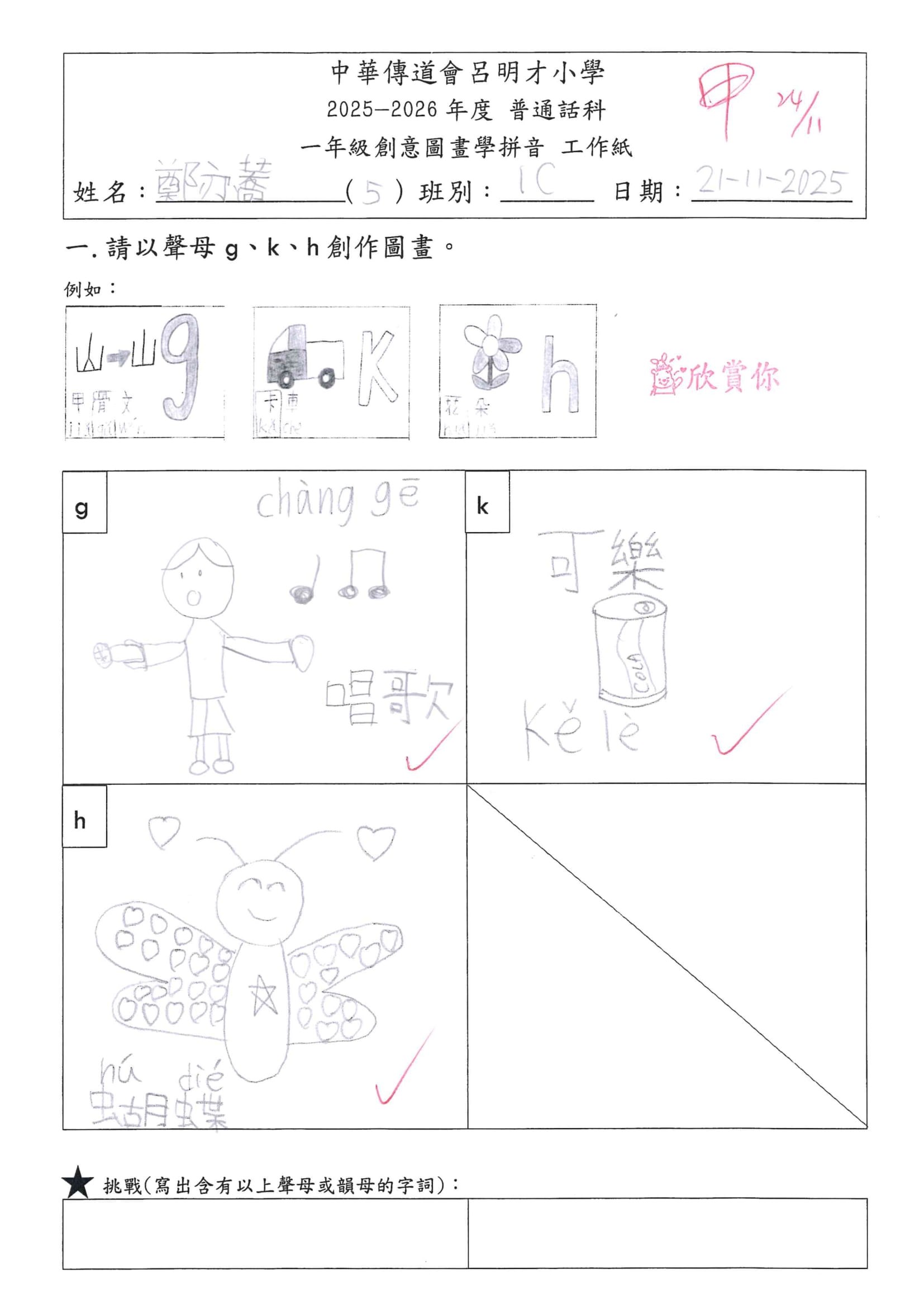 小一創意圖畫學拼音工作紙佳作