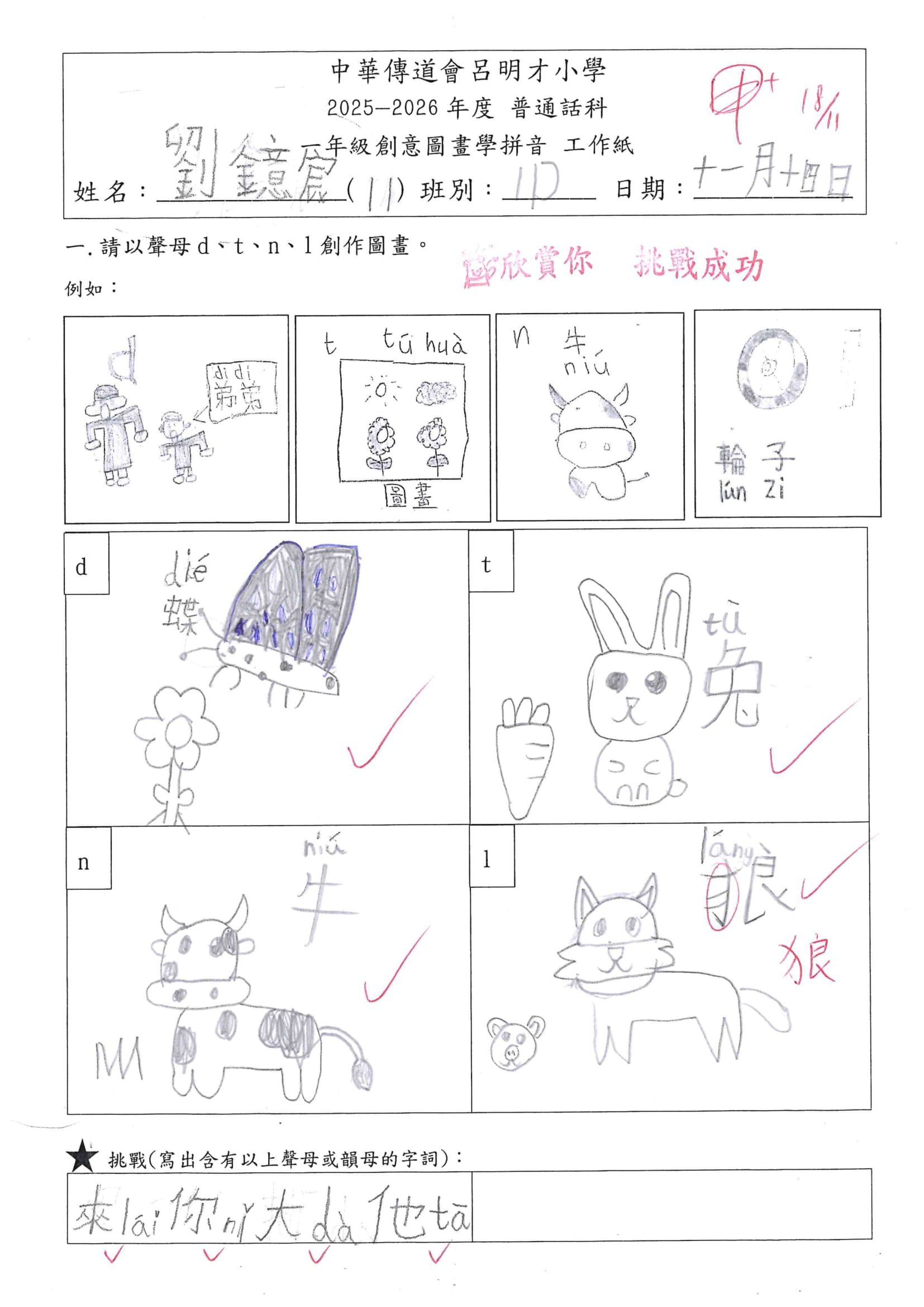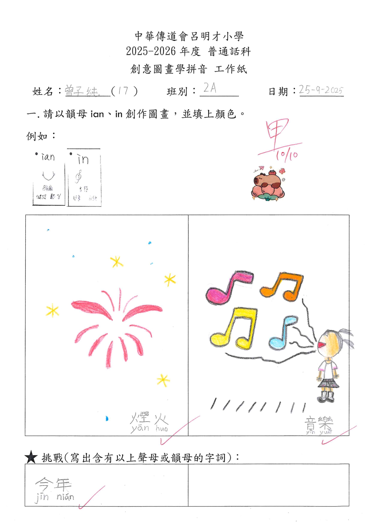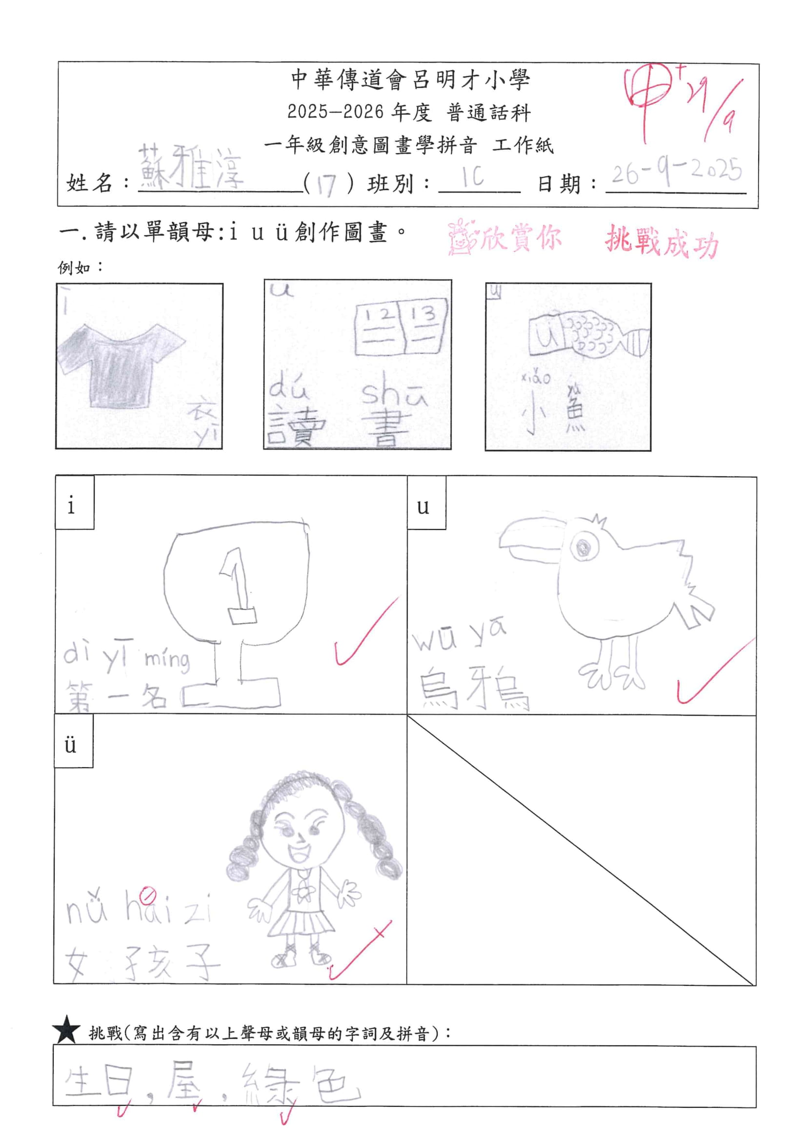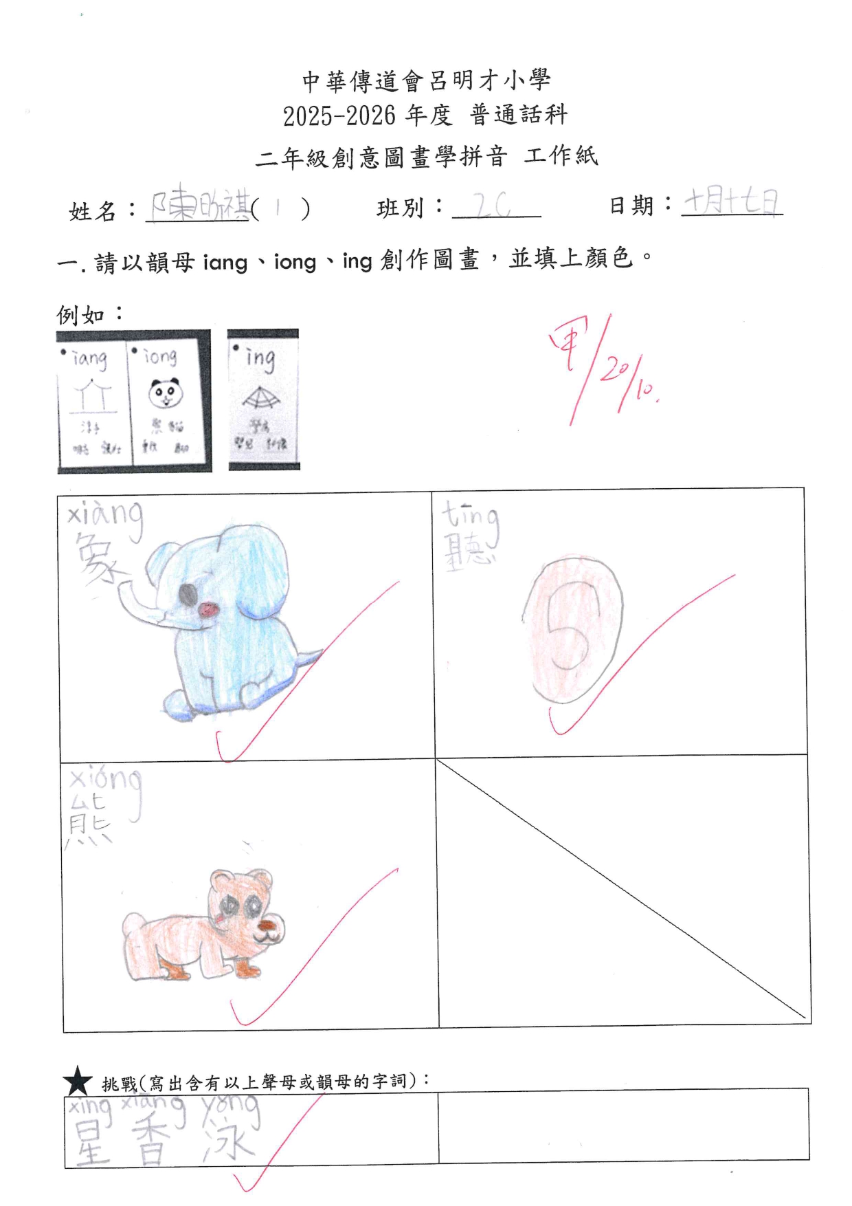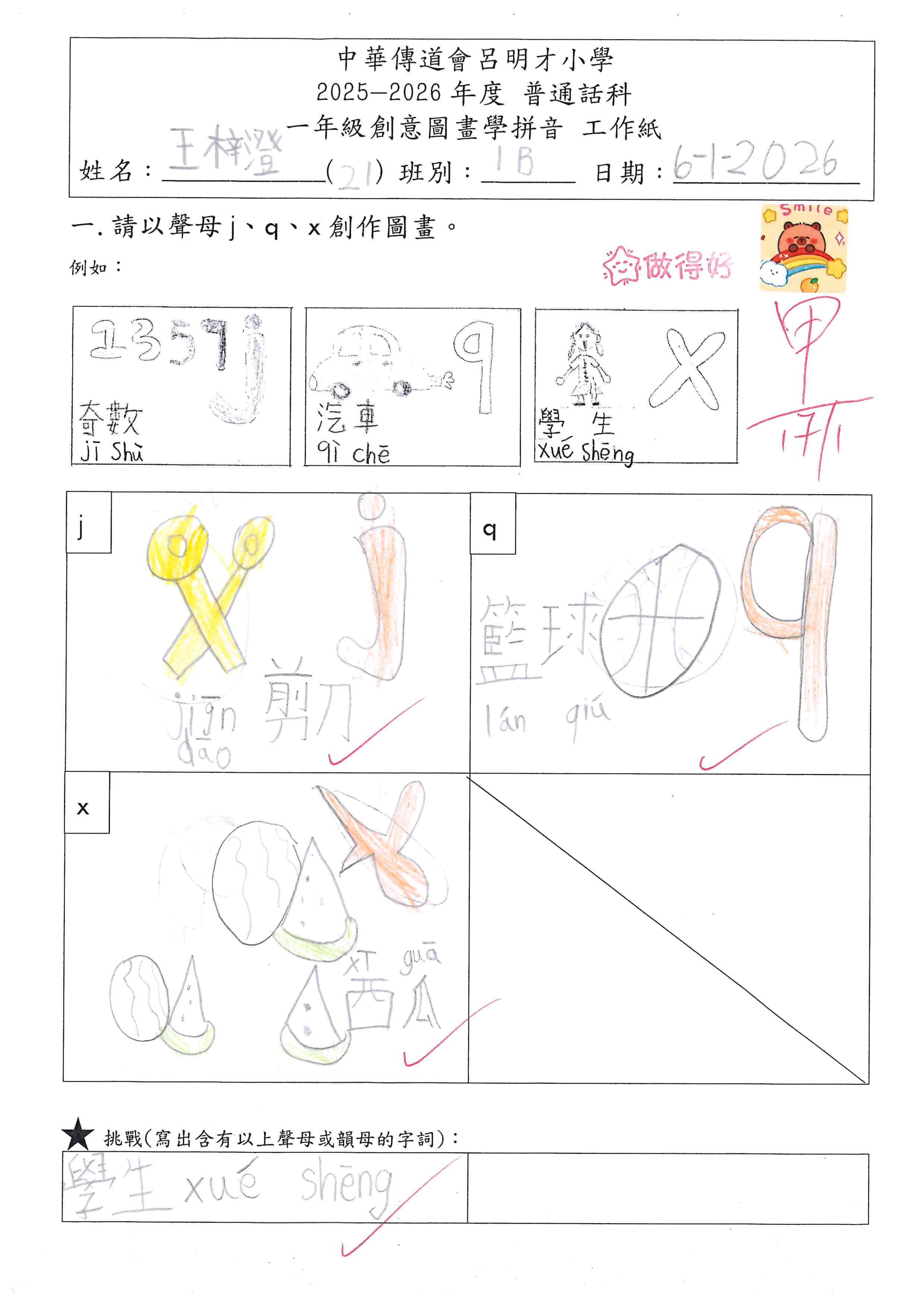 小一創意圖畫學拼音工作紙佳作