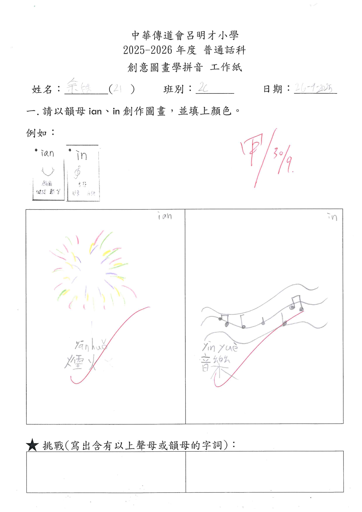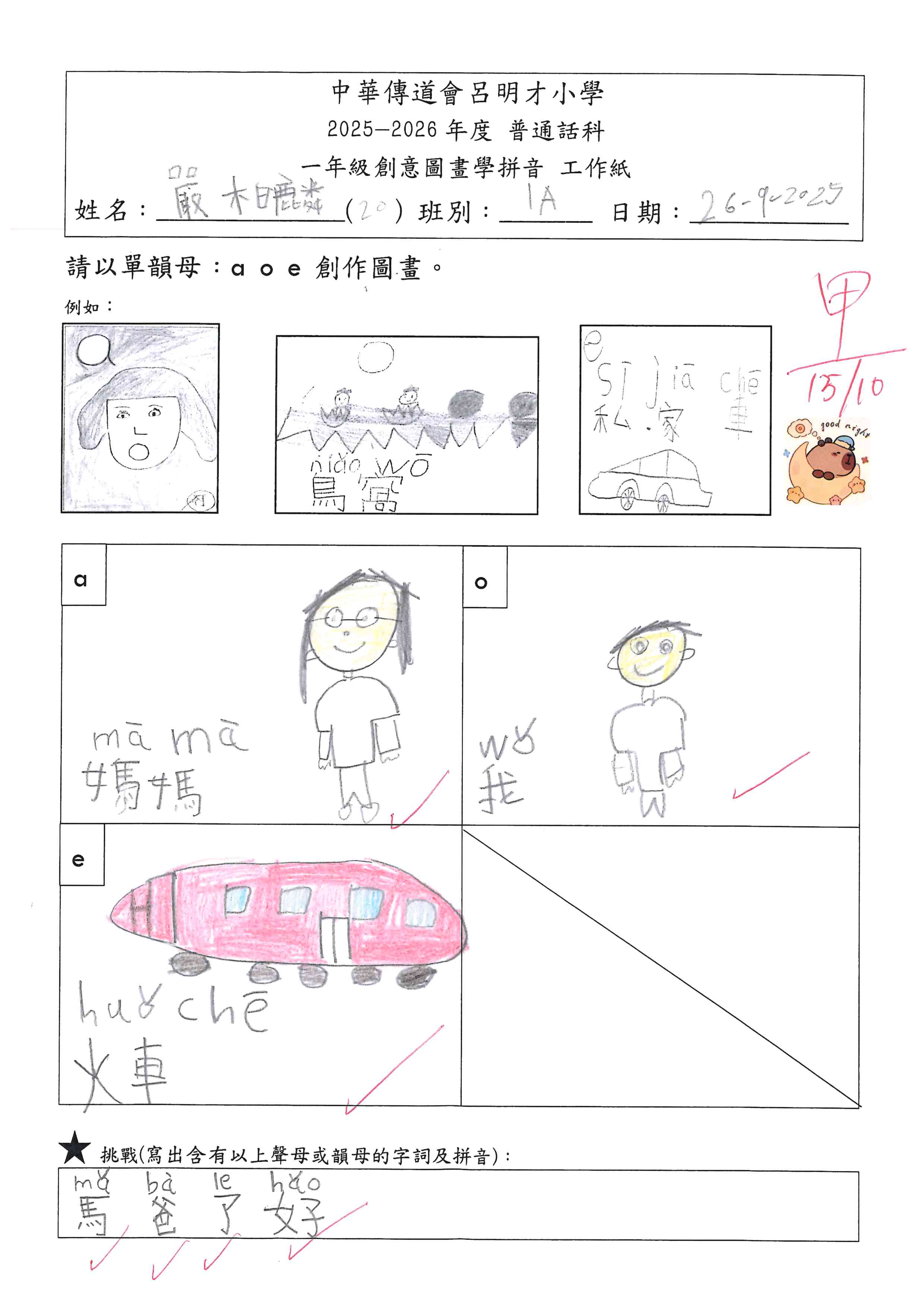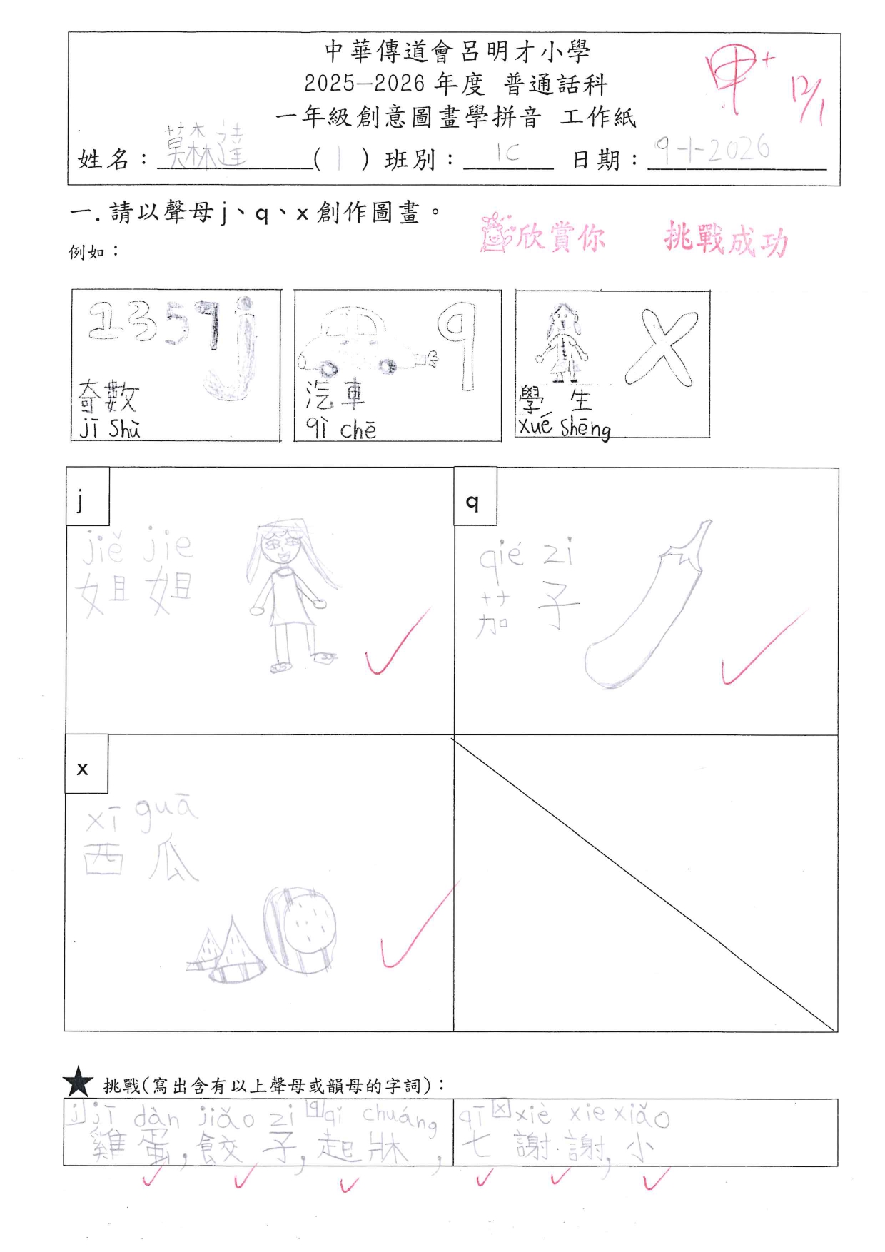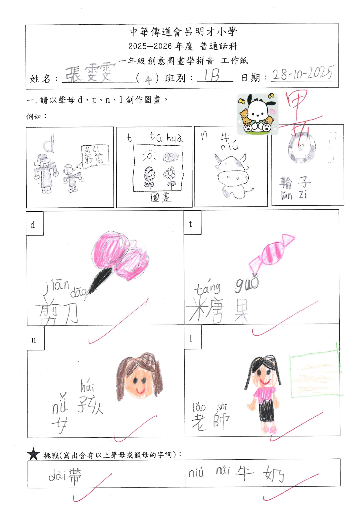 小一創意圖畫學拼音工作紙佳作