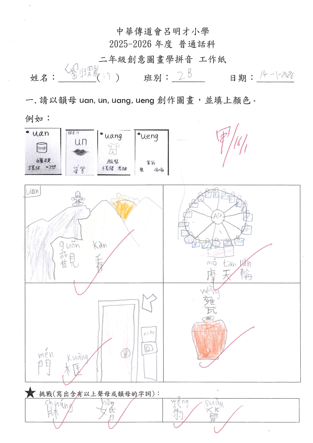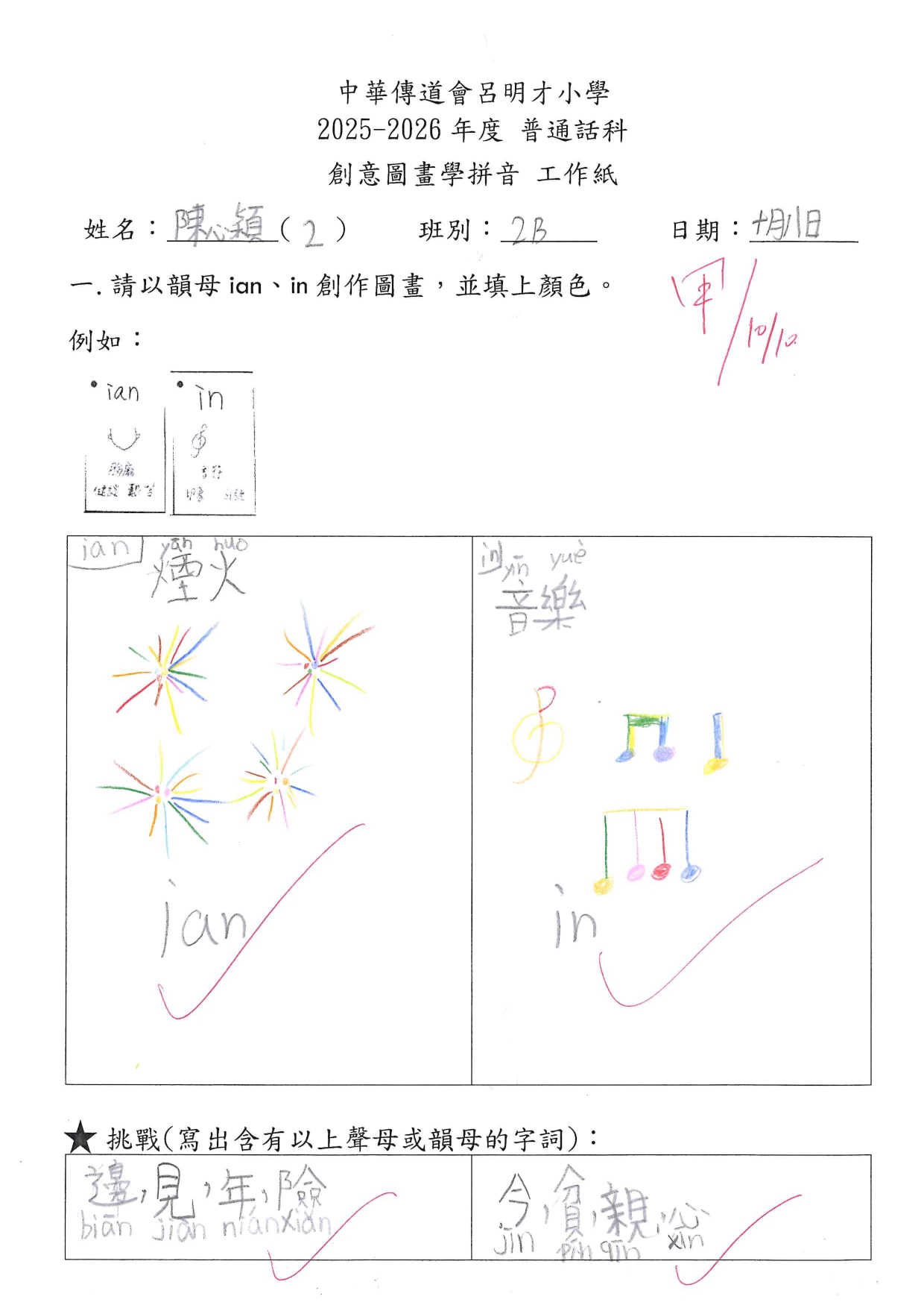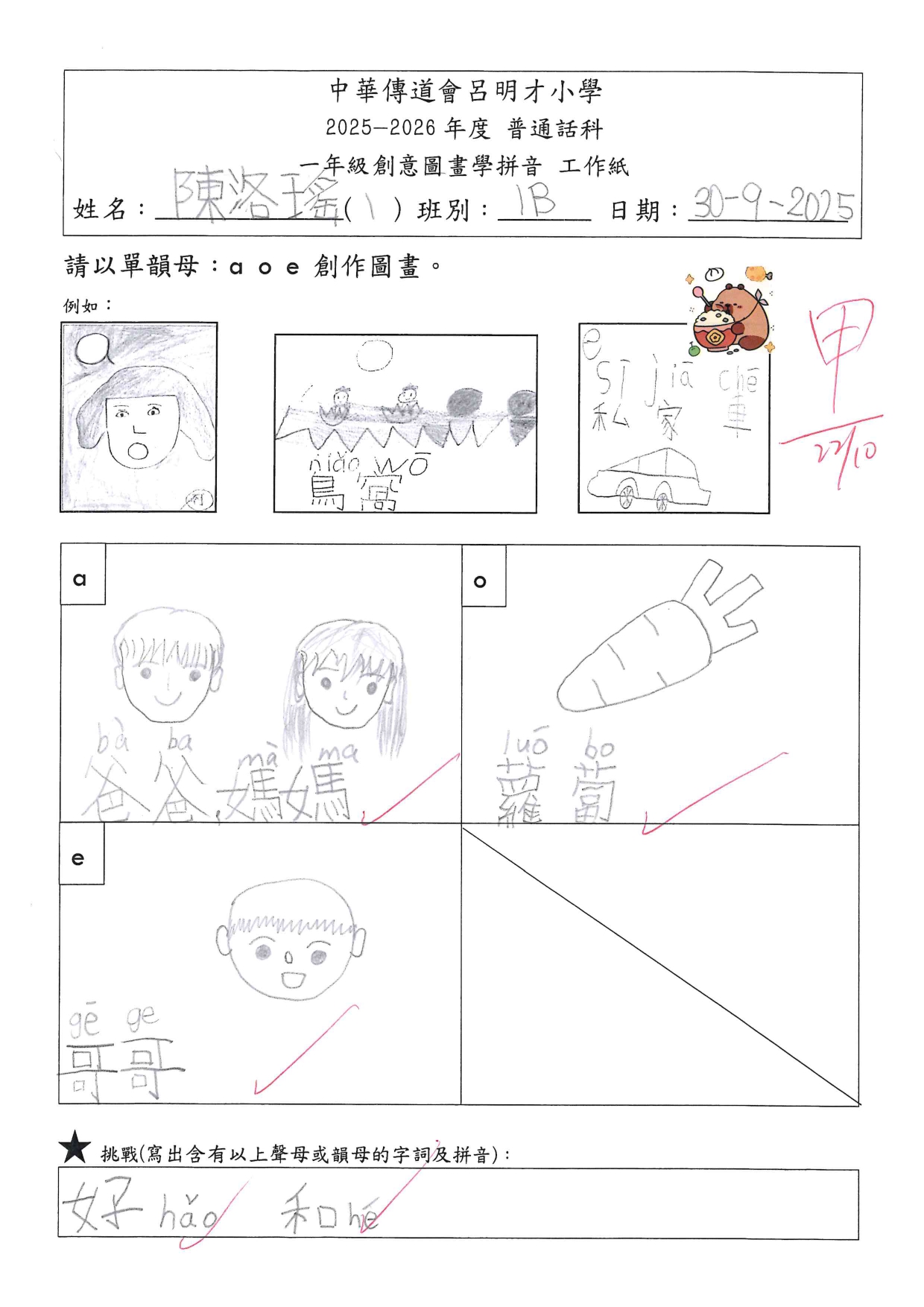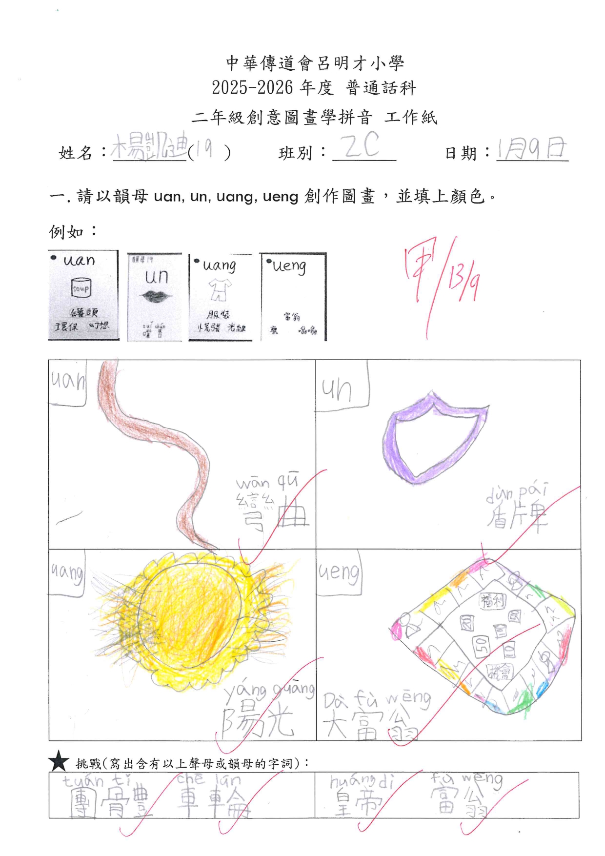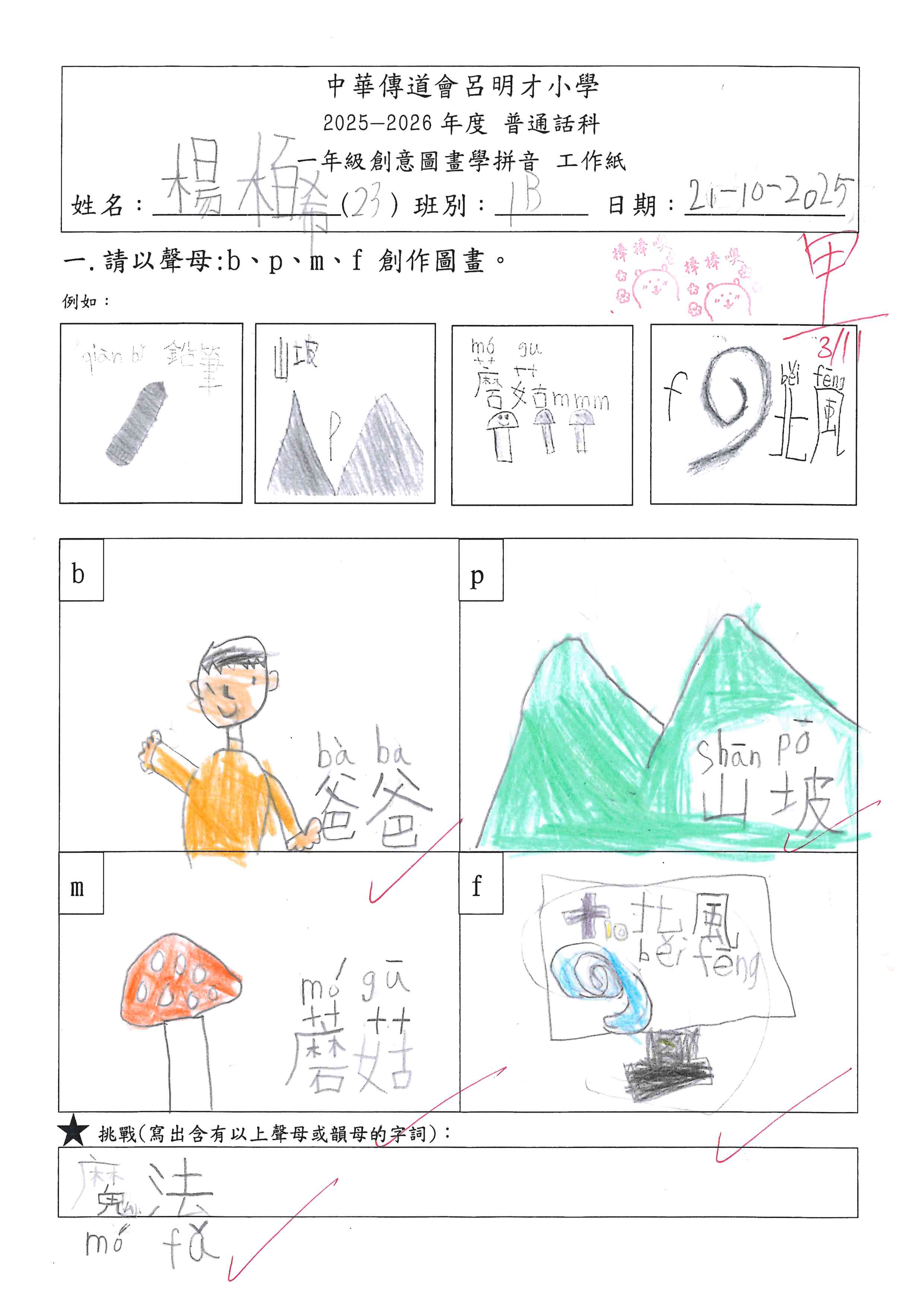 小一創意圖畫學拼音工作紙佳作