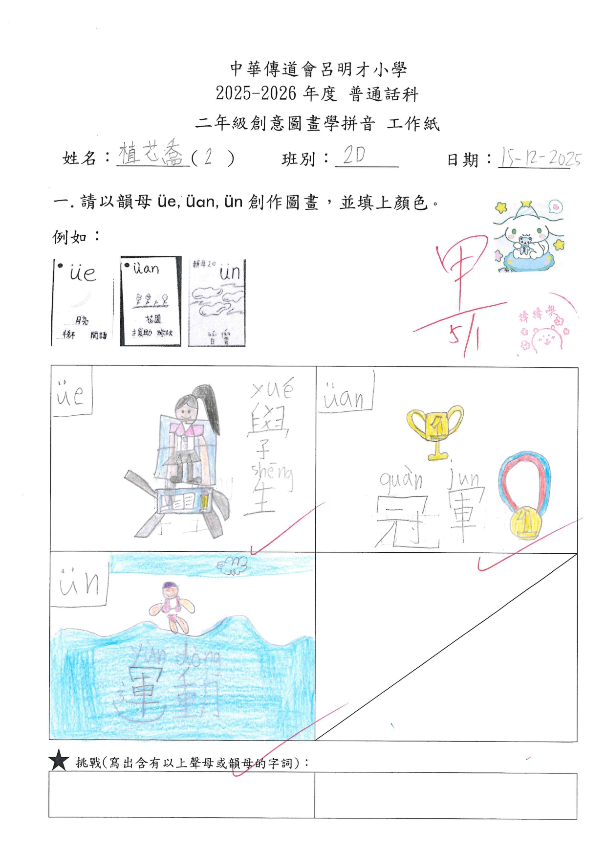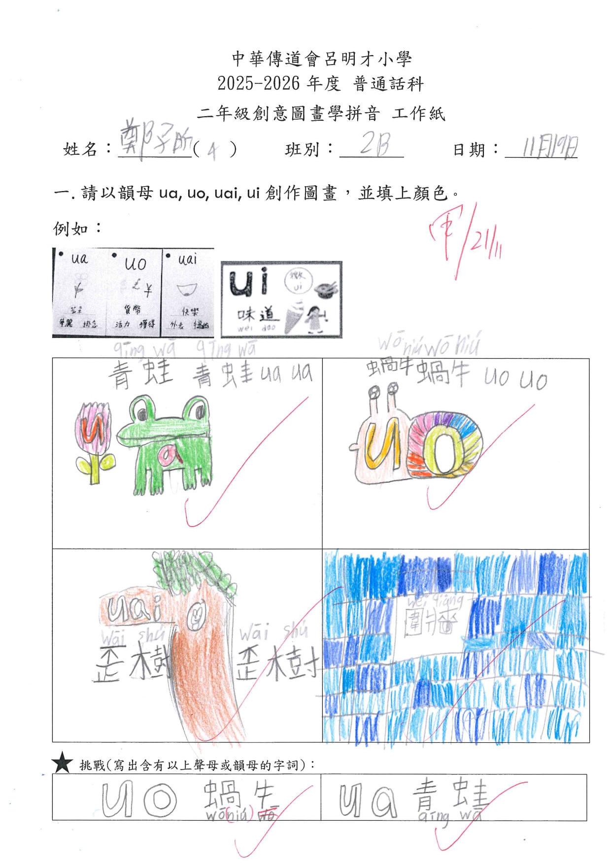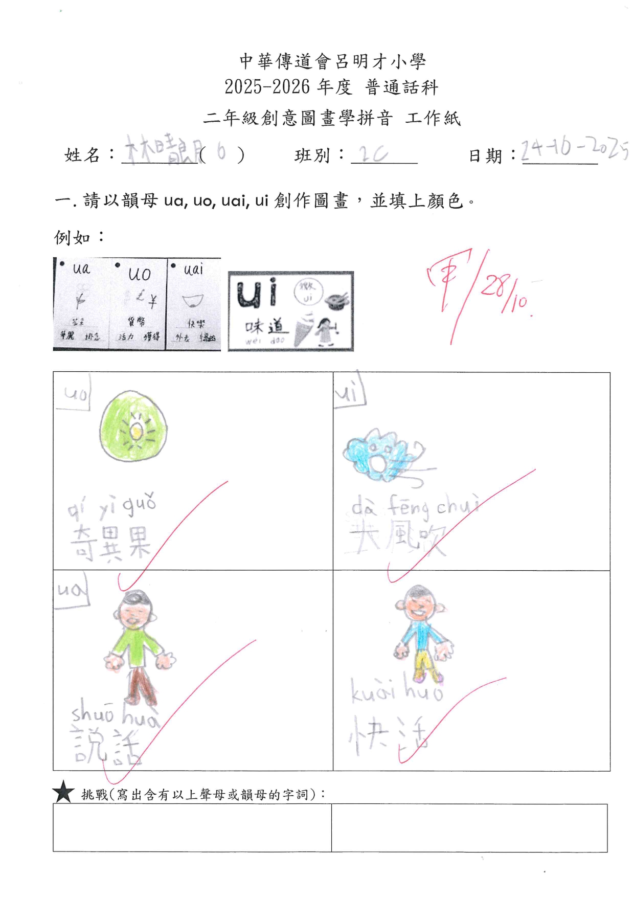 小二創意圖畫學拼音工作紙佳作