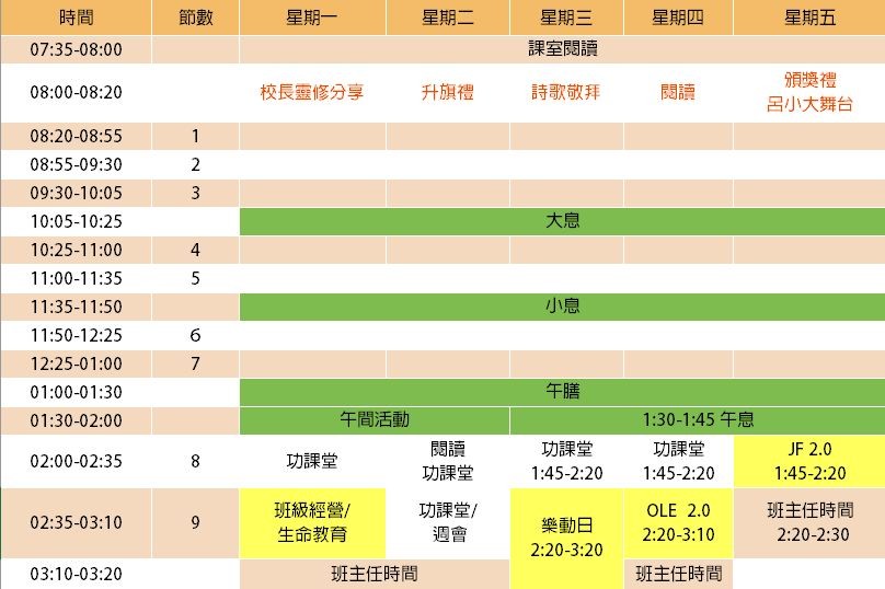 上課時間表