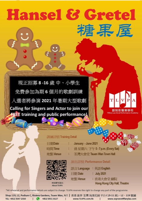 童話歌劇訓練《糖果屋》學校推薦計劃,希望透過試音,加入表演團隊的同學,請聯絡李詠恩老師。