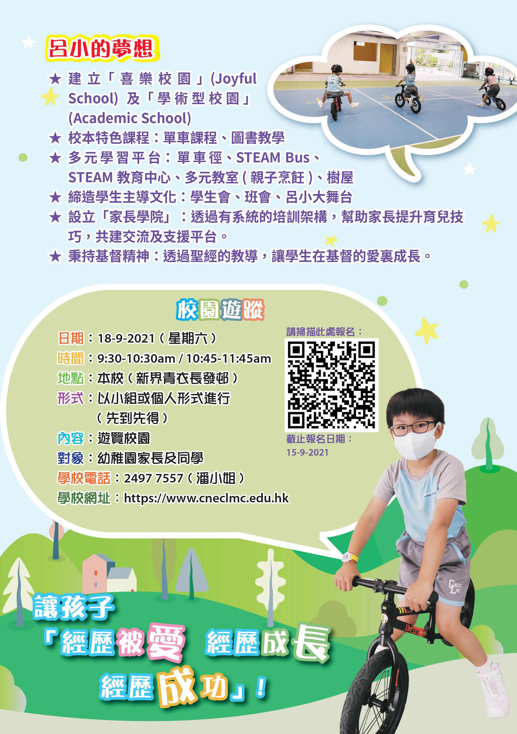 (温馨提示:是次遊覽活動不設學校簡介講座,如欲了解本校教育理念及發展,請各位家長報名參與於11/9(六) 舉行的「2021-2022學校簡介會 - 講座」。)