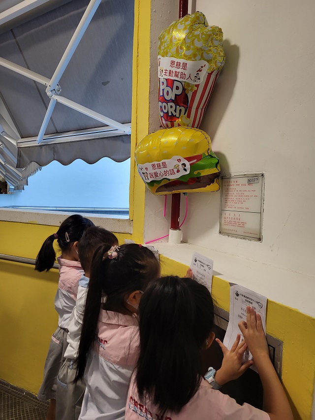 學生藉「恩慈處處」活動,學習隨時隨地實踐恩慈,同學在校園中的氣球上尋找恩慈的意思,並在遊戲紙上寫下答案,他們都表現得十分雀躍,積極參與。