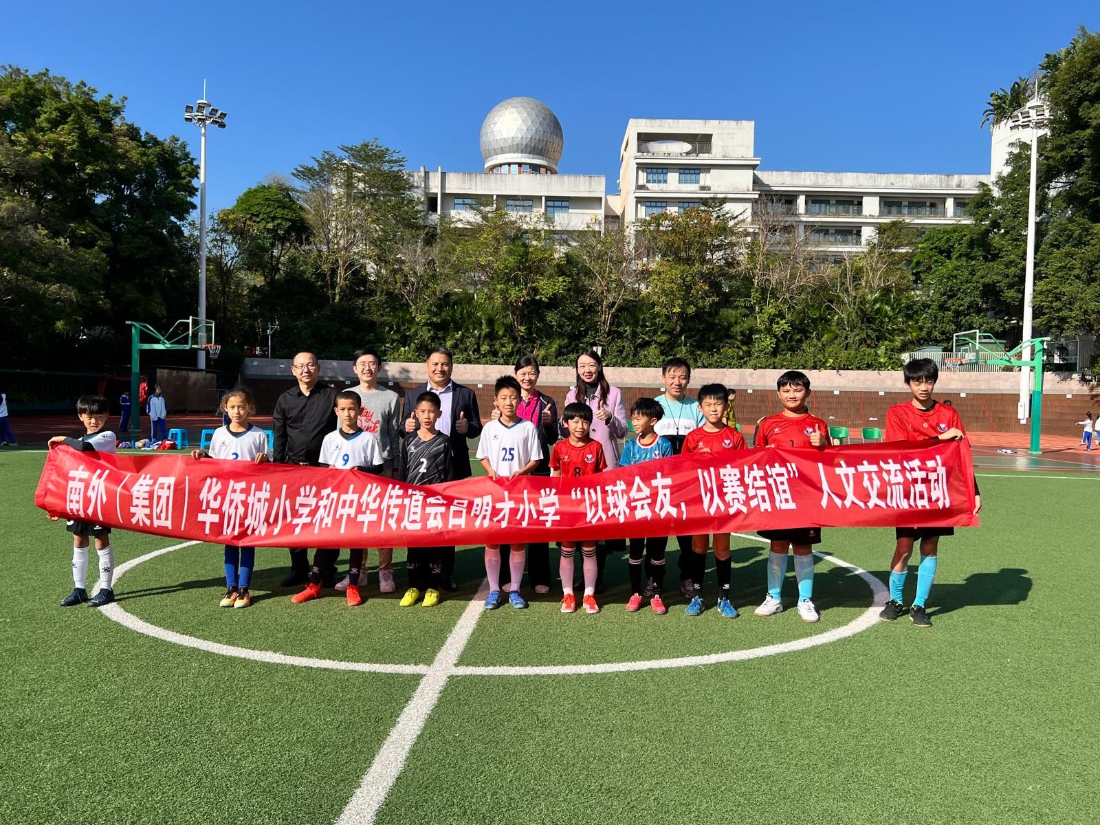 為積極推進深港姊妹學校之間的深度融合交流,促進兩校學生彼此的友誼和文化交流,我們於2024年12月13日(星期五)與深圳市南山區華僑城小學舉行了以「以球會友,以賽結誼」為主題的足球友誼交流比賽。